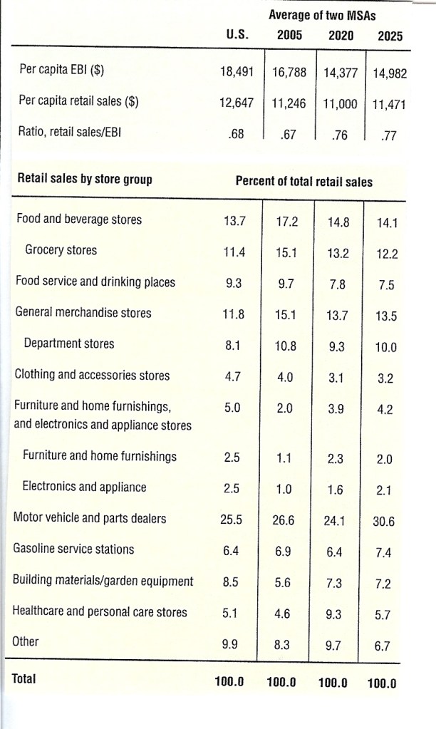 - spend more of their income: The spending per income ratio rises from .67 today, to .76 for the 2020 MSAs and .77 for the 2025 MSAs.