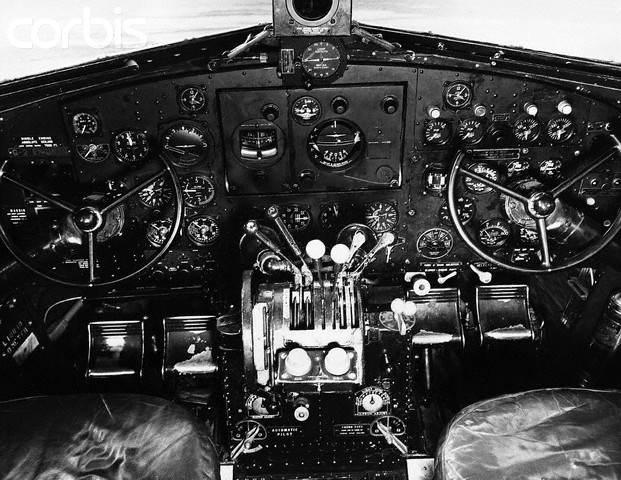 The scene is sometime in the old era when cockpits had round dials plus flight engineers and navigators.