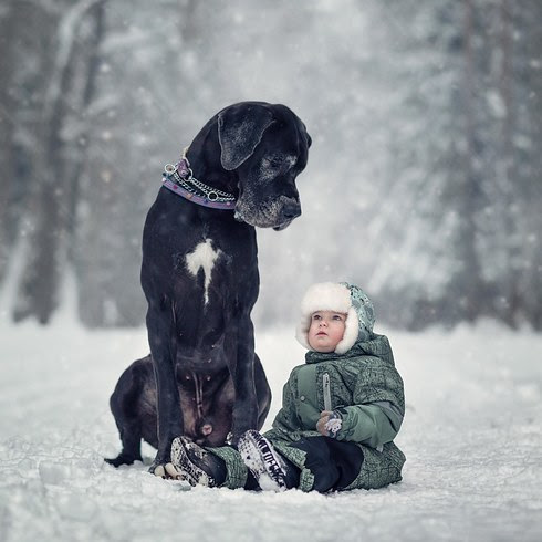 Yes, stunningly beautiful photography. We have a Pyrenean Mastiff cross here at home, Brandy, and the smaller dogs have a great relationship with him. You put your finger on why dogs, not exclusively, and children reach out to us: purity of spirit and sweet innocence.