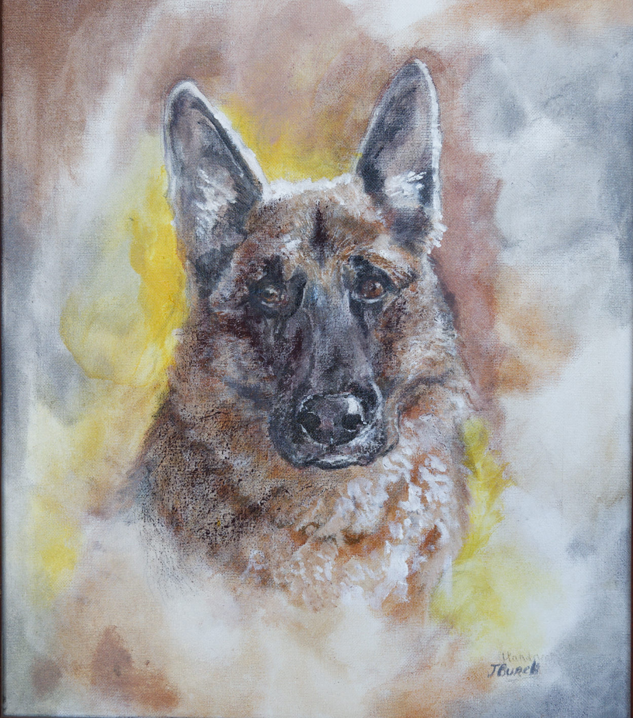 Her love for doggies is so evident. Sammy, Victor and Pharaoh have “I love you” imprinted in each brush stroke.