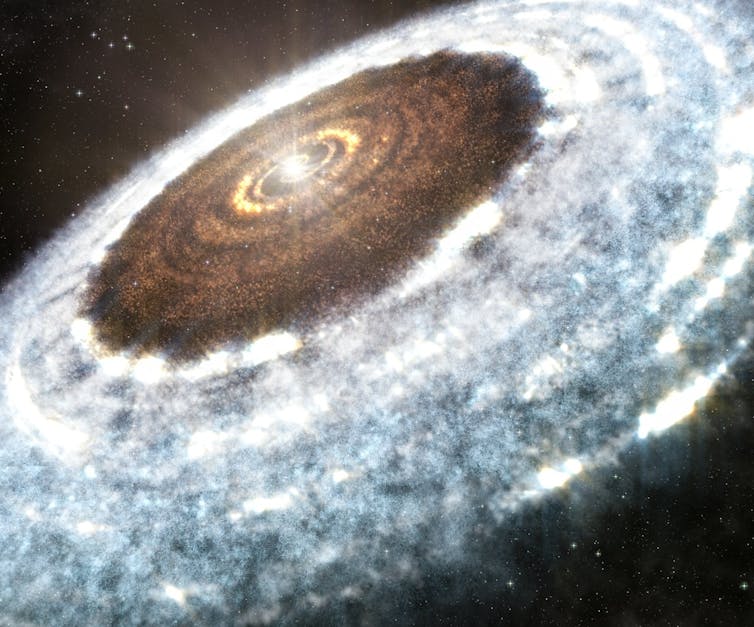I am an astronomer who studies the formation of stars and planets using observations from radio and infrared telescopes. In a new paper, my colleagues and I describe the first measurements ever made of this previously hidden middle part of the water trail and what these findings mean for the water found on planets like Earth.