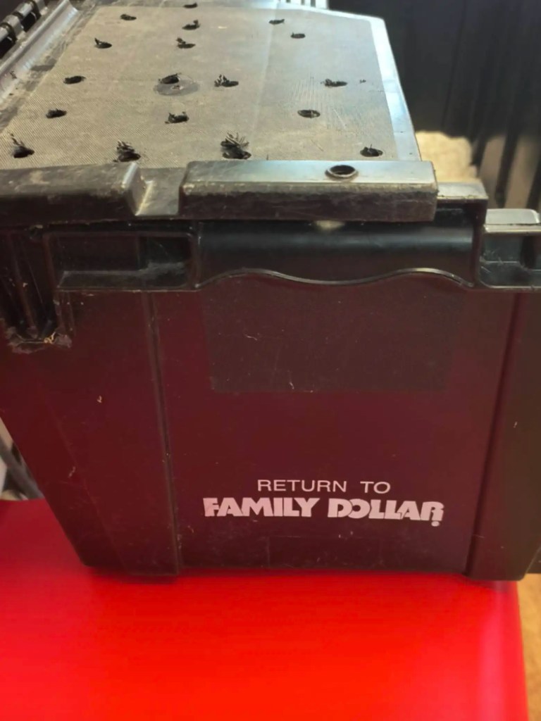 The man approached the object — a large black bin labeled “Family Dollar” — and carefully lifted the lid to see what was inside. There, wriggling against each other in the tight space, were eight 10-week-old puppies.