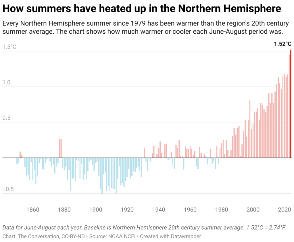 That might seem small, but temperature increases associated with human-induced climate change do not manifest as small, even increases everywhere on the planet. Rather, they result in more frequent and severe episodes of heat waves, as the world saw in 2024.