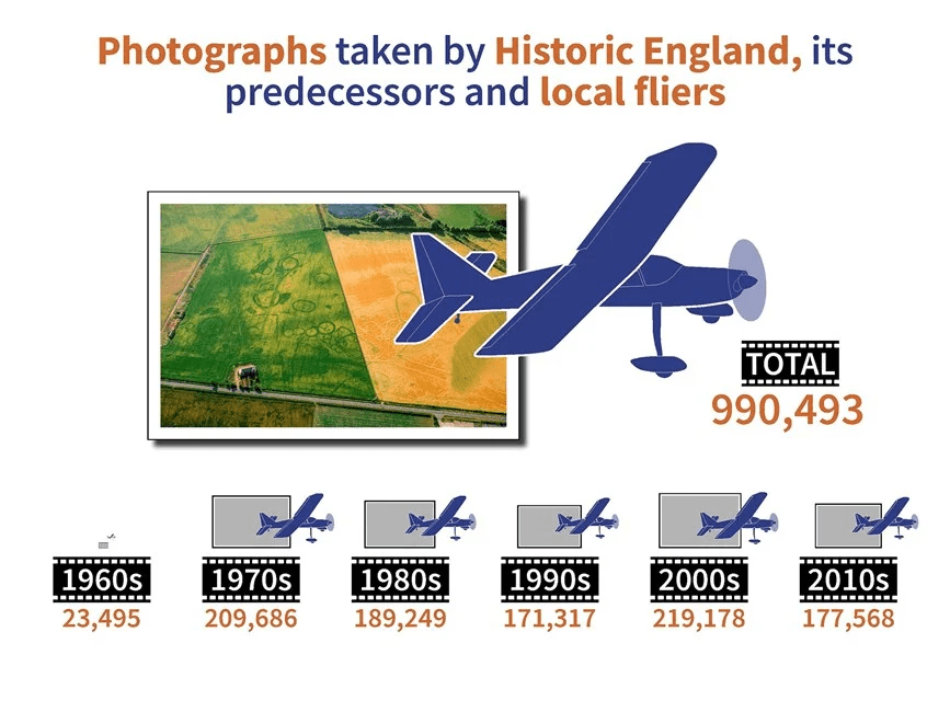 In the late 1980s, as the archive acquired more aerial photographs, RCHME developed a systematic methodology to interpret, map and record all archaeological features, not just cropmarks, visible on aerial photographs. Pilot projects in Kent, Hertfordshire and the Thames Valley were set up to develop the methodology further.