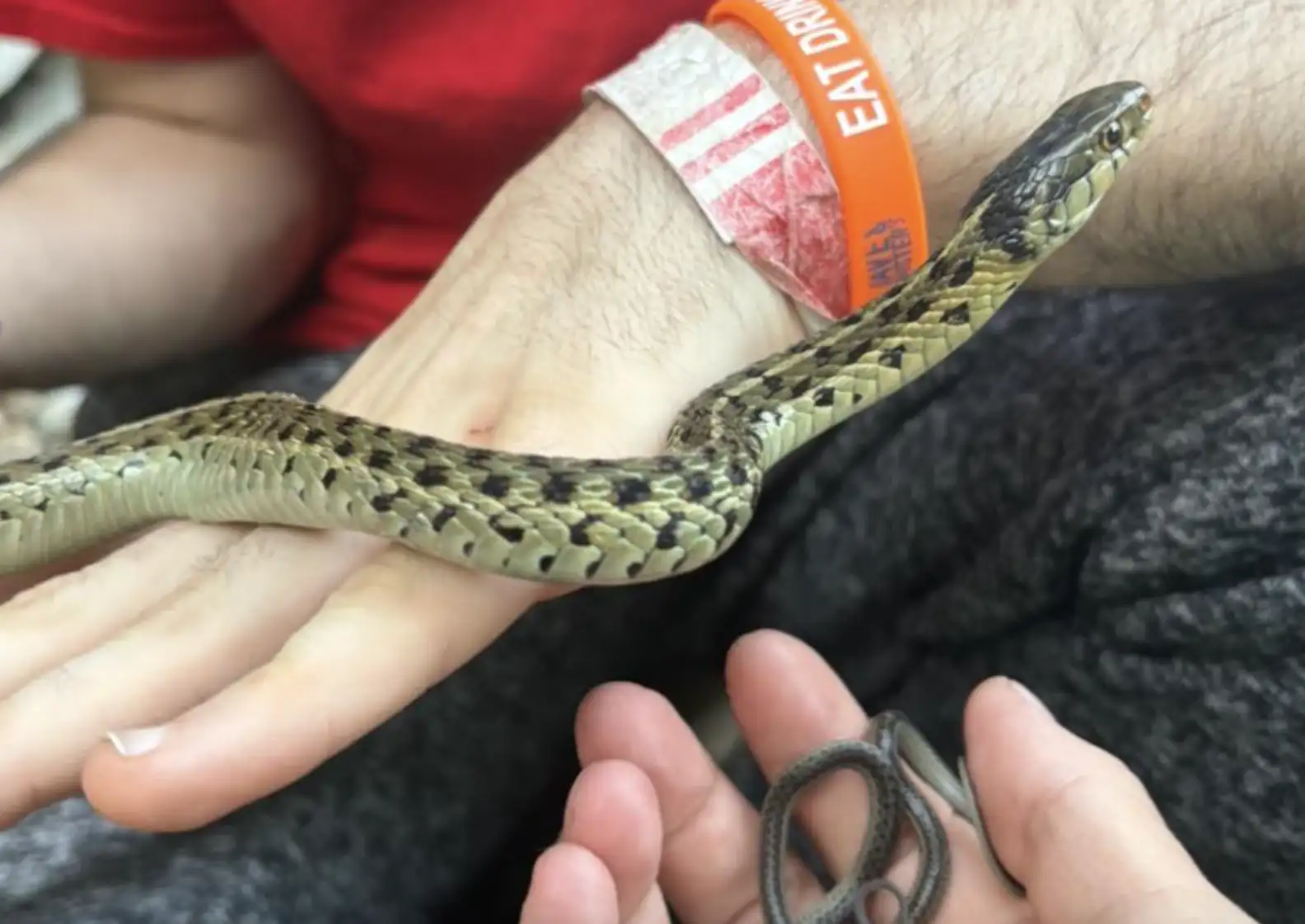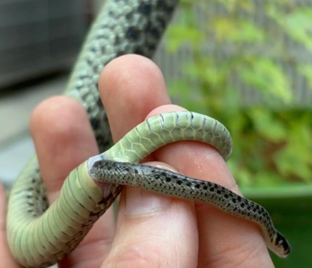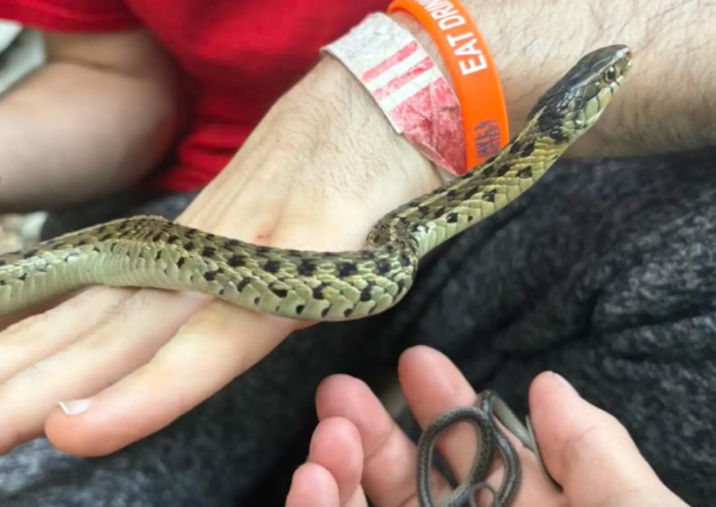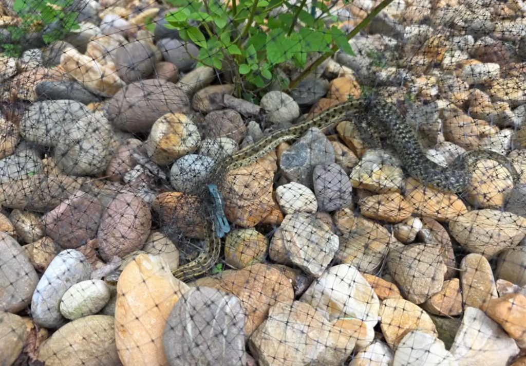 Reiner hastily removed the remaining netting as the mama snake birthed two babies. Then, she took the snake and her little ones to a wooded area behind the house and released them back into the wild.