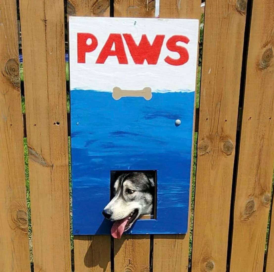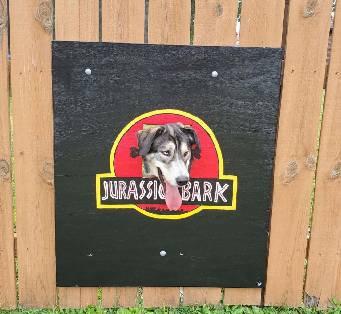 “At first it started as a joke with my wife that I was going to paint something on the street side of the fence around the dog window, but then the idea of painting an actual picture and hanging it up to frame the hole started to form in my mind,” Stanley said. “The shutdown brought an obvious black cloud along with it. Even though more people were out on the street walking or biking, we knew it was due to job loss and uncertain times. I first talked about it to my son who was 100% behind the idea of putting something up on the fence to hopefully bring a smile to people’s faces.”
