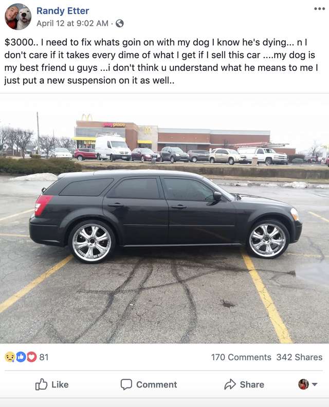“I was gonna spend every dollar made from the car sale on his surgery,” Etter said. “I would be devastated if I lost my best friend.”