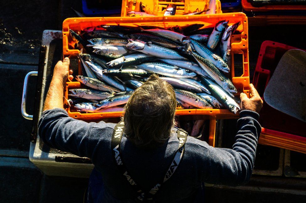 Overall winner, Laurence Hartwell’s Landing Mackerel, captures a fisherman with his catch in Newlyn, Cornwall