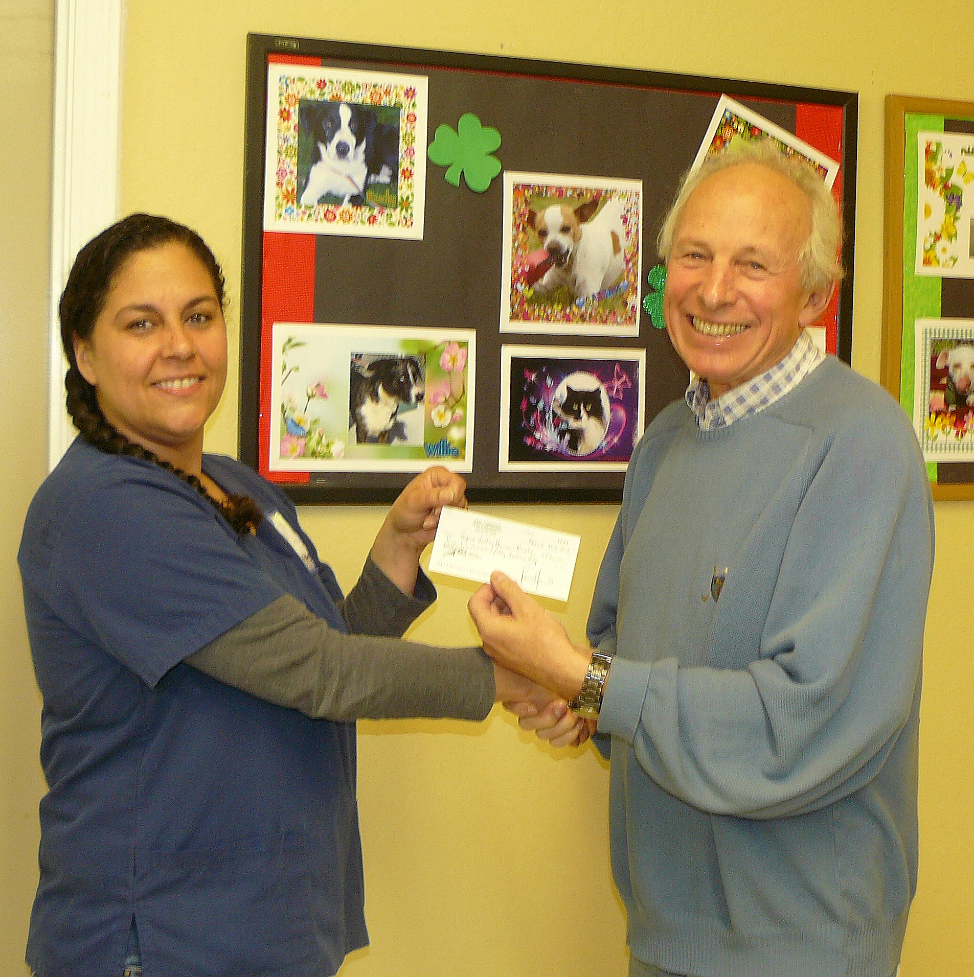 Yours truly passing a cheque to the value of $750 to Margaret Varner, Director of Facility Operations at RVHS.