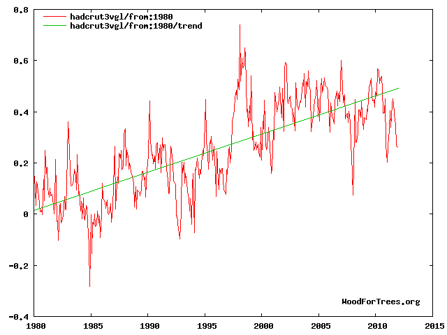 Back to that response from chrisd3. He offered this, “Finally, here is a chart of global temps from HadCRU.” Here is that chart, remember we are looking at Global temperatures.