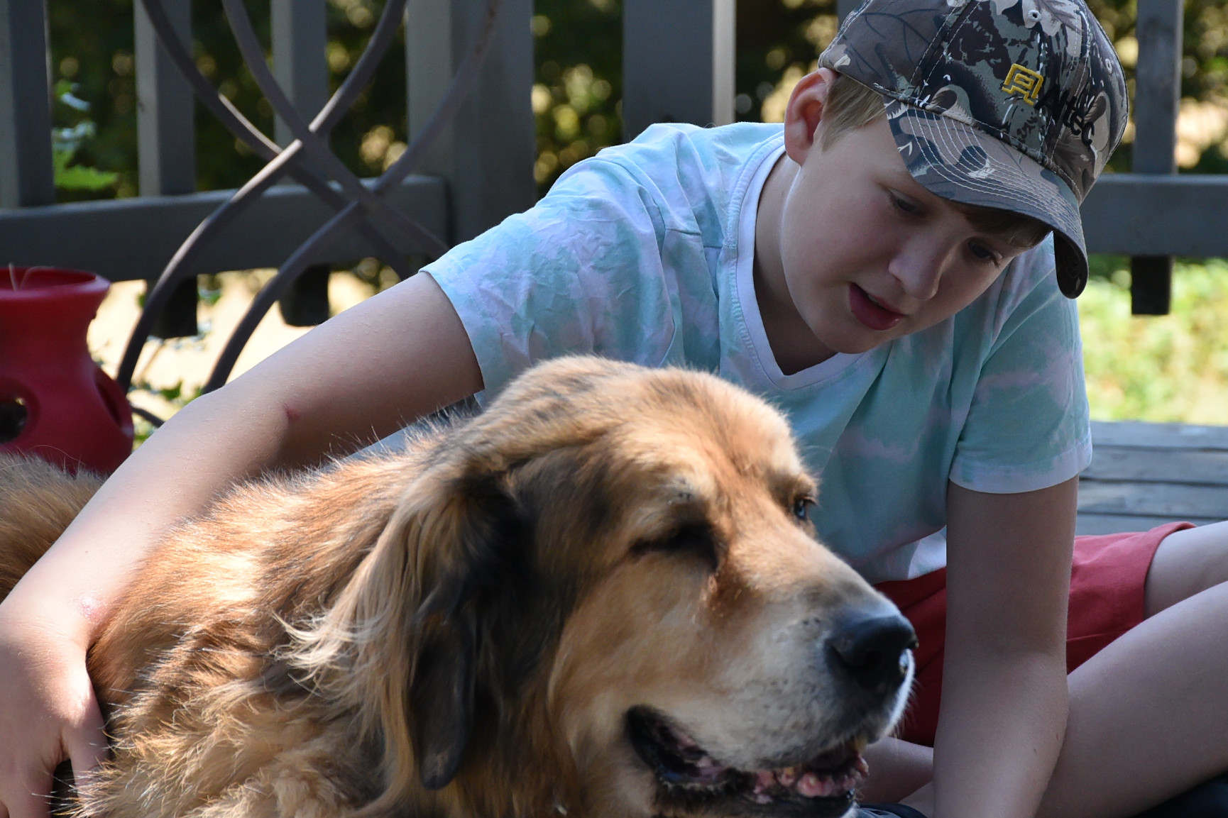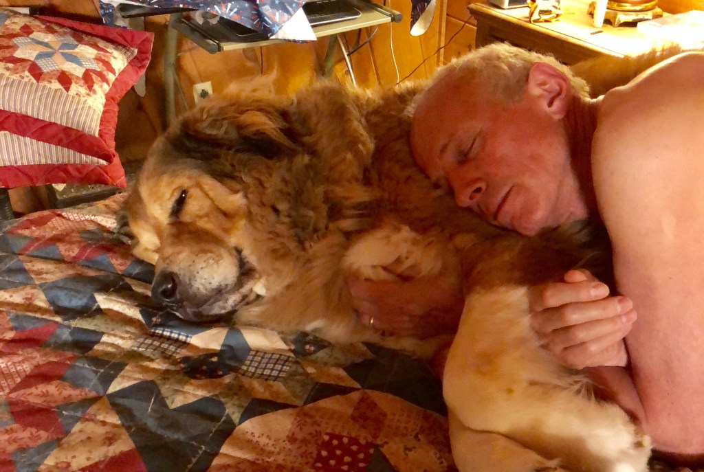 Here is Morten, who spent hours caressing and fondling Brandy, our largest dog.