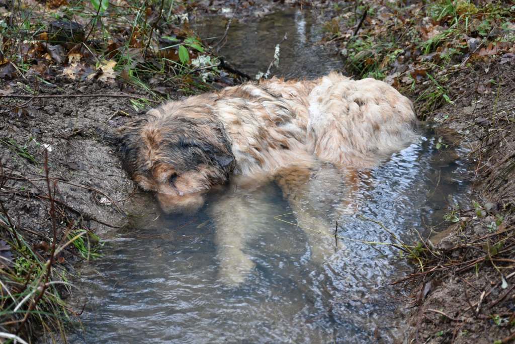 Halfway between the bridge over Bummer Creek and our gate, I wondered if the tiny stream was flowing down that comes from the other side of the Hugo road. Imagine my surprise when I found a dead Brandy.