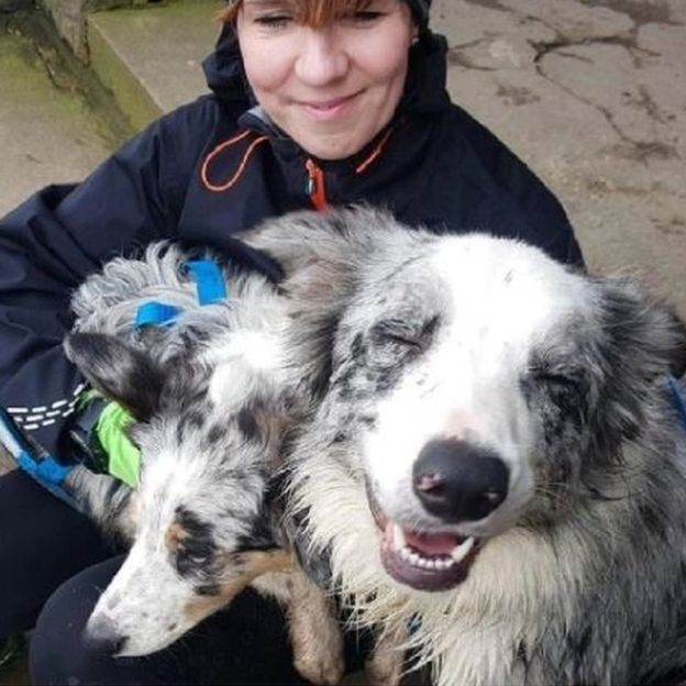 Pita Oates, 48, was left unable to stand after she fell on a three-mile run in Lancashire with her blue collies Buddy and Merlyn.