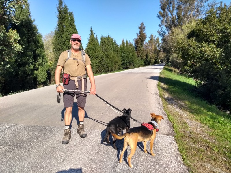 After a coffee here, they headed to the top of the town, past the railway station, through the industrial area and back into the countryside. Merlin took all this in his stride and it became clear that he was the better option for the urban parts of the journey. Chica would have found this quite stressful.