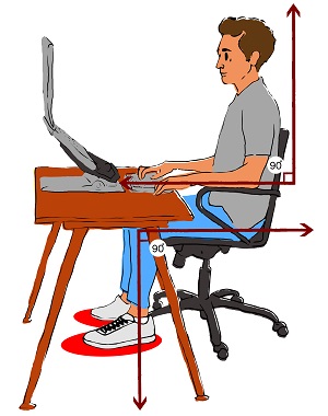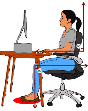 Make sure that your feet touch the floor, or if that’s not possible, use a footrest
