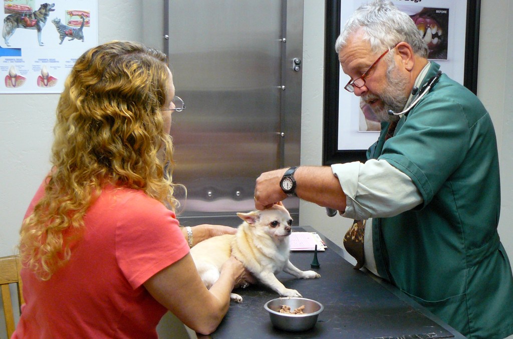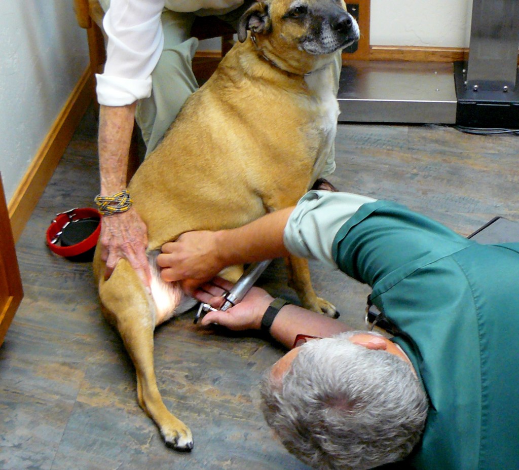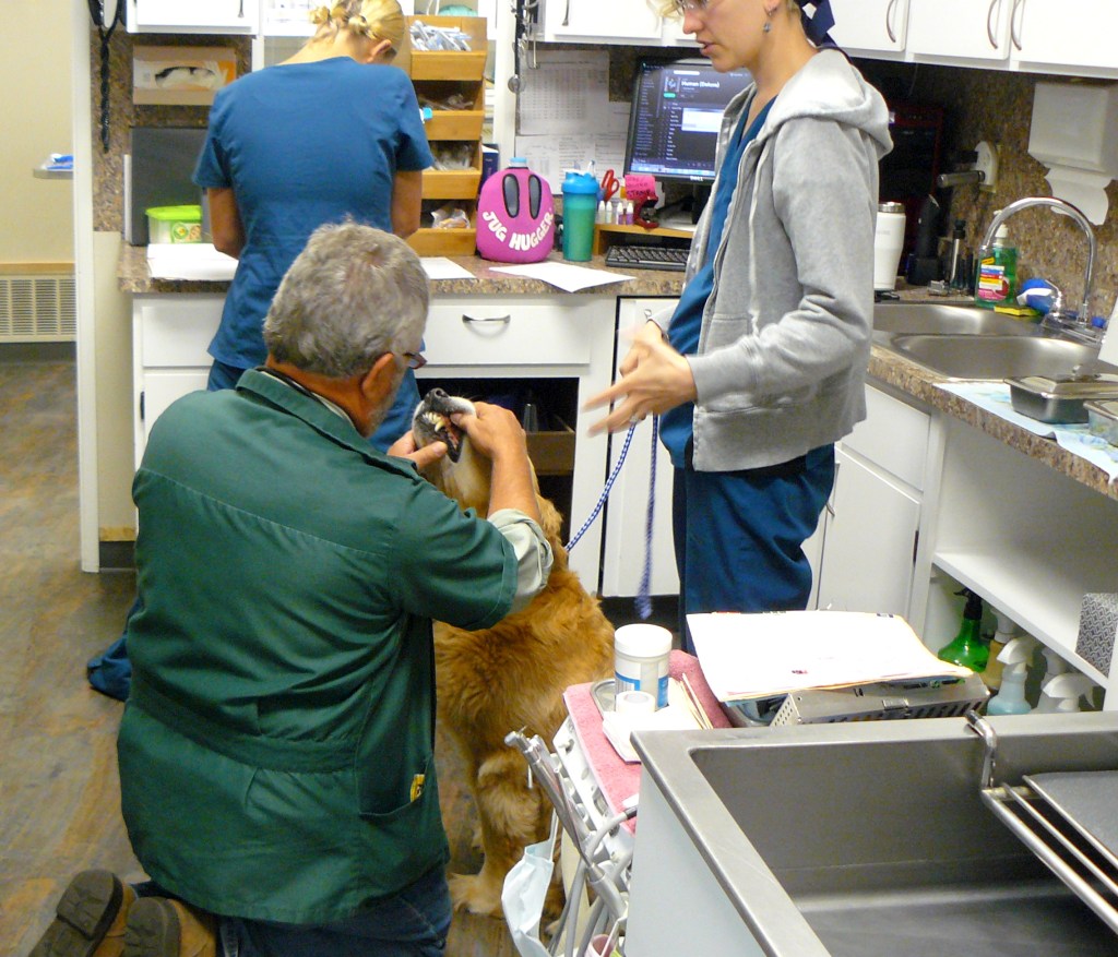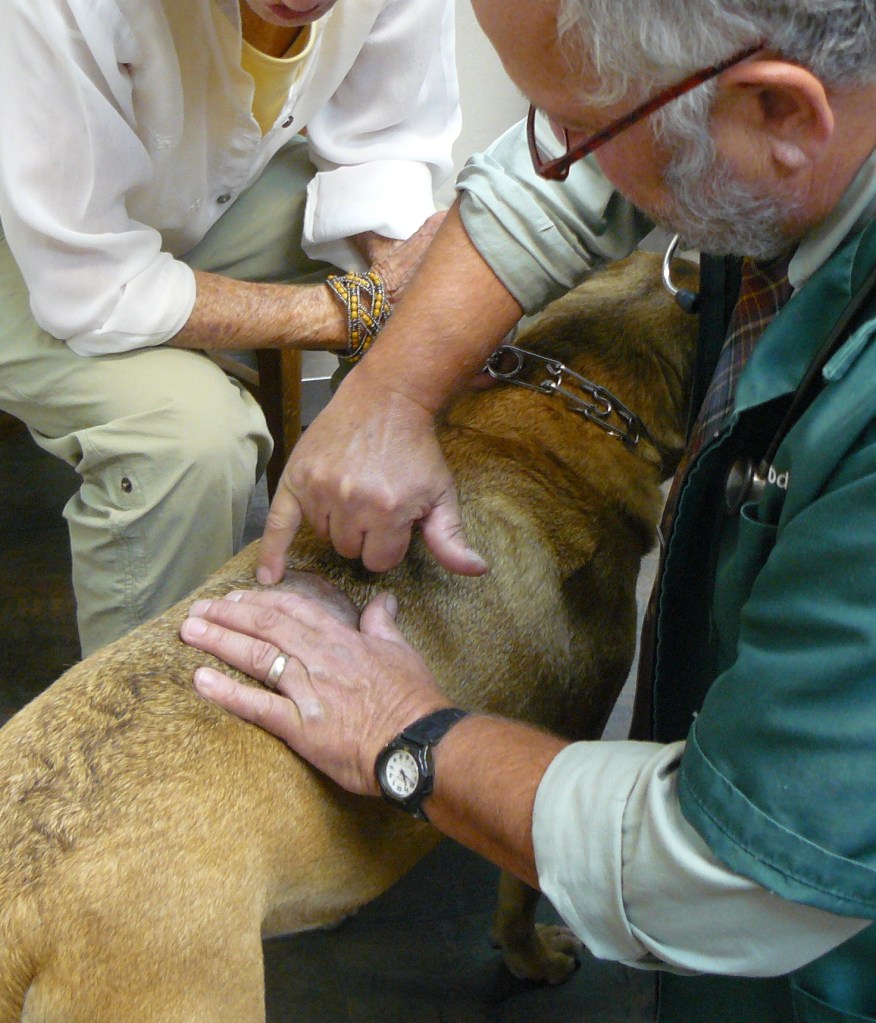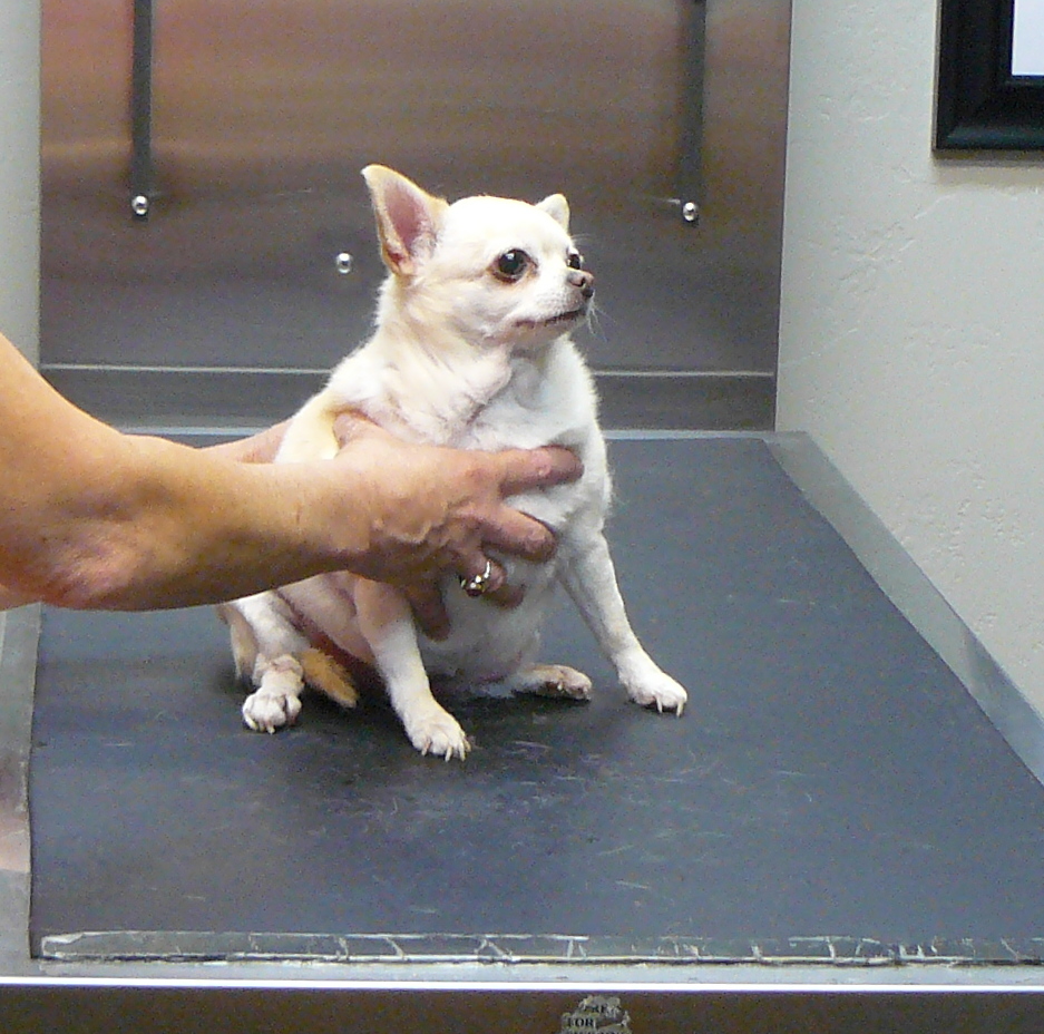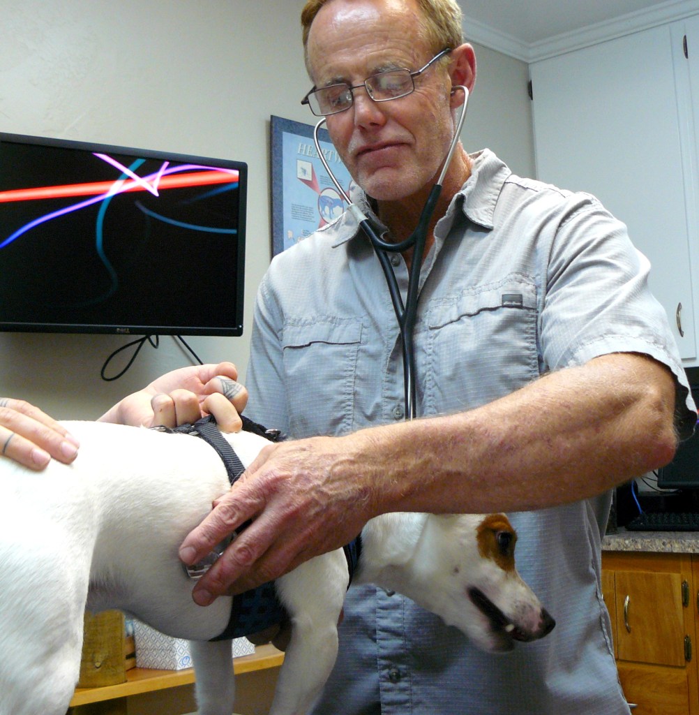 This is Cooper, a male Jack Russell, being checked out by Dr. Russ.