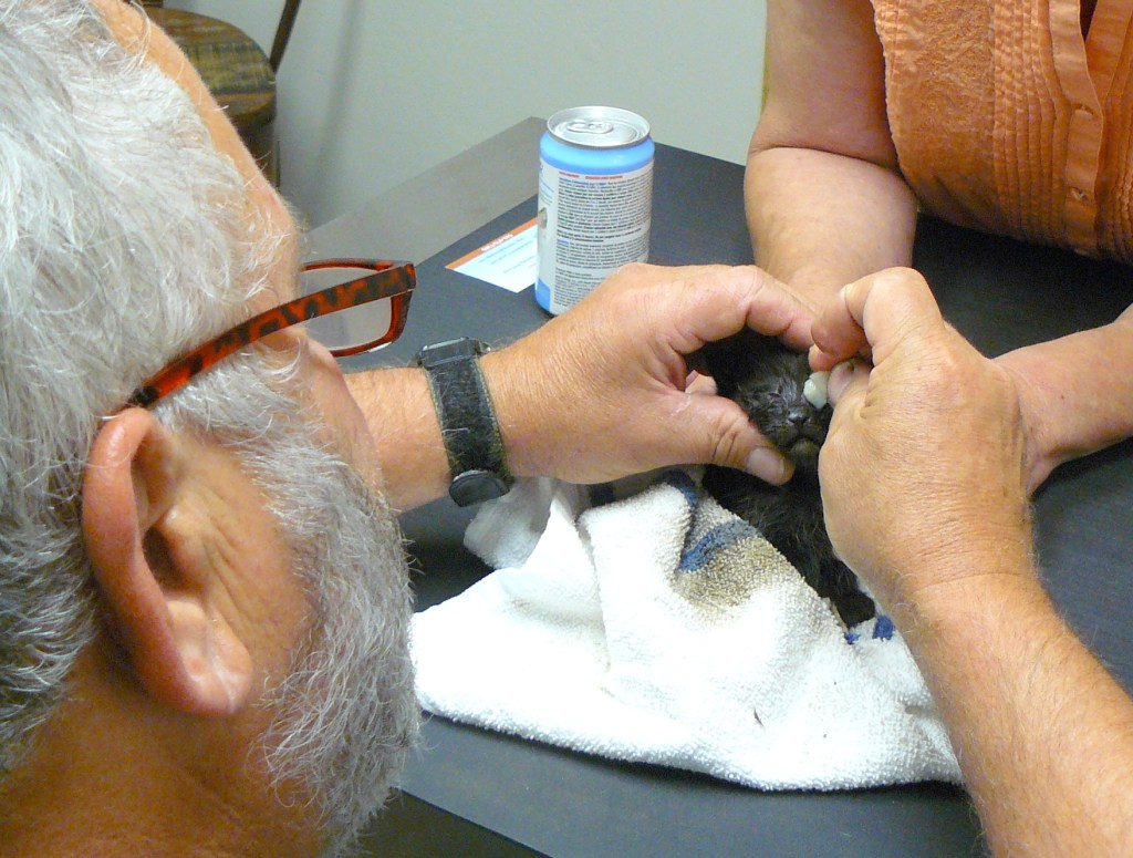 The second item is a correction. In the report that described Lynn bringing in a stray kitten that had terrible puss oozing from one eye, I wrote: “Moments later Jim has not only cleaned out all the puss but found and removed the cause of the infection that was behind the kitten’s eyeball.”