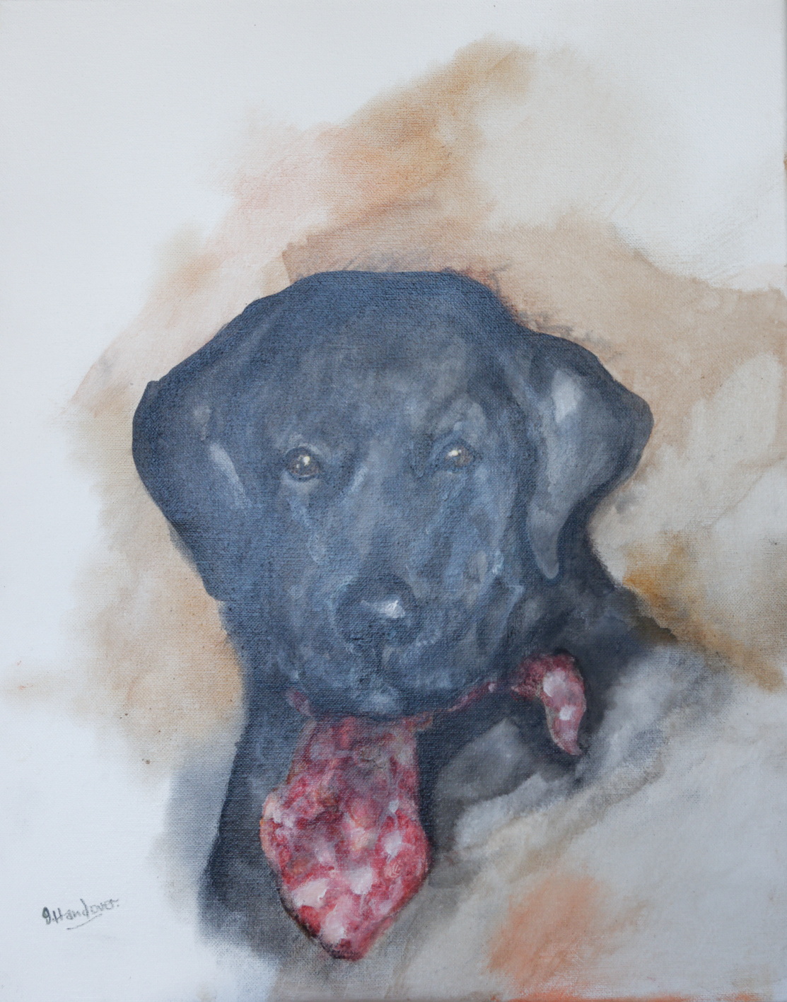 So I present a painting of Louis, a dog belonging to Jim and Janet Goodbrod, when he was a puppy, that’s Louis not Jim!