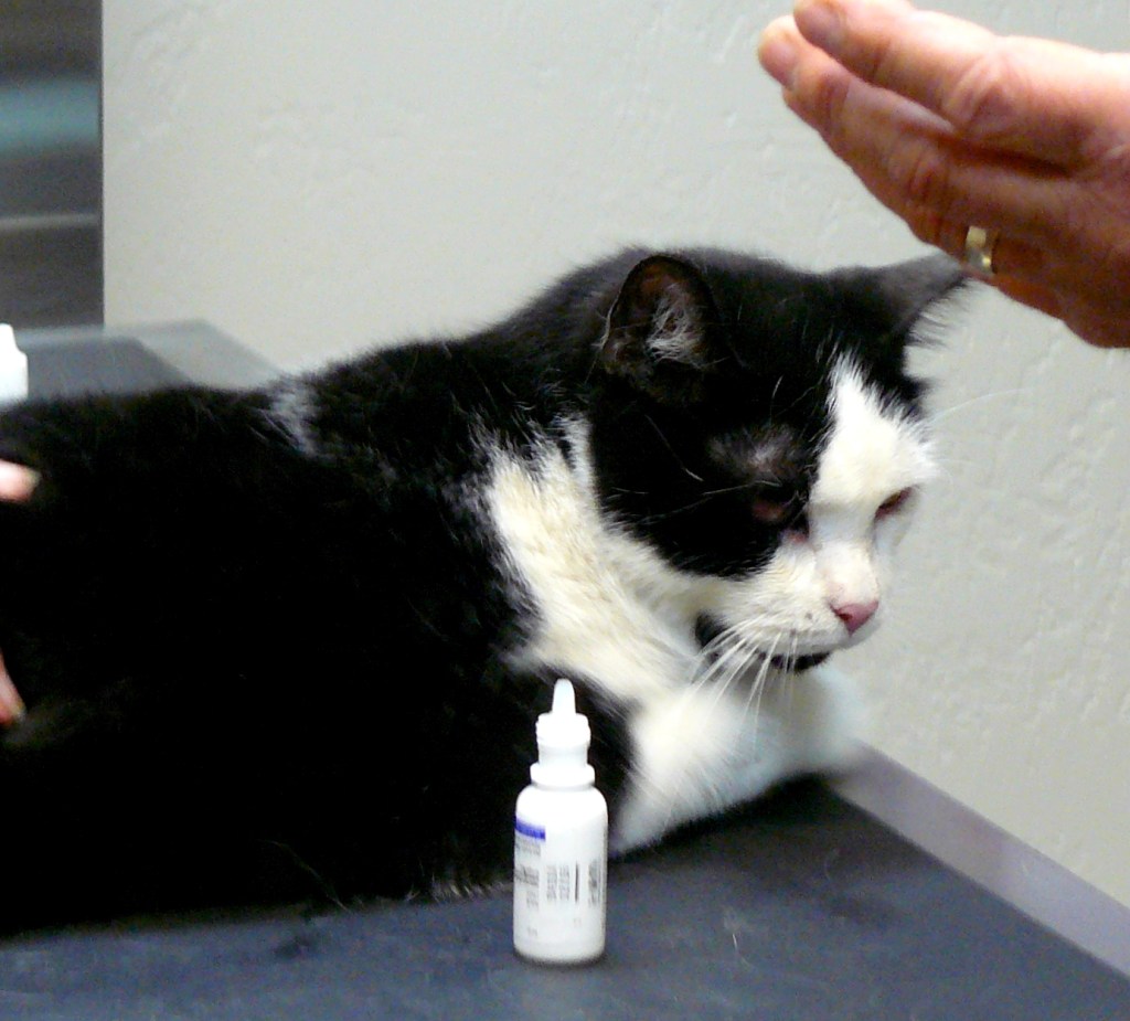 It is determined that the pressure in Ace’s eyeball is normal and Jim is pretty certain that Ace has no sight at all in that right eye. He recommends giving the cat some antibiotics and explains to the owner that cat’s can function perfectly adequately with just one eye. Indeed, if necessary the eyeball could be removed, something that would not be a disadvantage for Ace.
