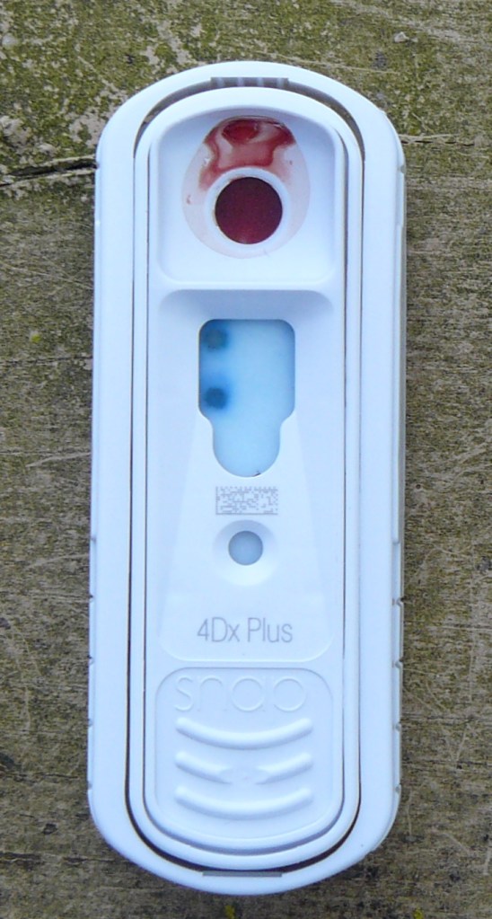 Dr. Codd took a quick blood test and, bingo, it revealed that Hazel was showing that she had, or had had in the past, an Ehrlichia Infection; a tick-borne infection.