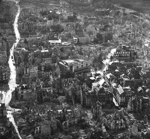 Here’s a picture of the visitation of war on the beautiful French town of Caen.