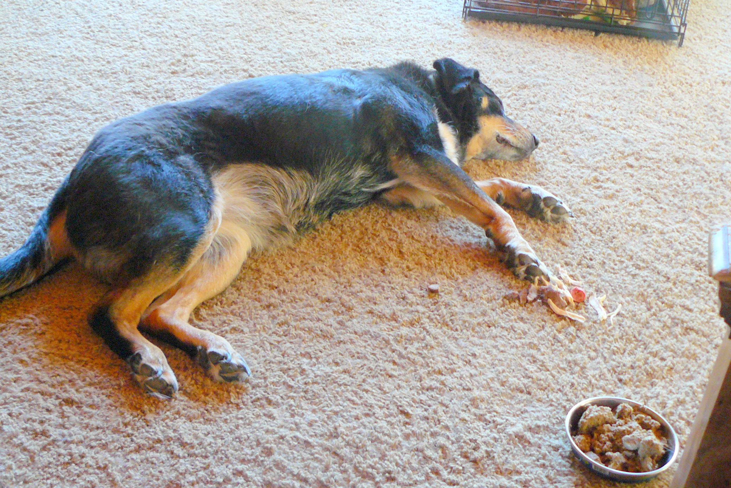 One morning, just a few days before we were due permanently to leave San Carlos and move our animals and belongings the 513 miles (827 km) to Payson, AZ, Jean went outside the front of the San Carlos house to find a very lost and disorientated black dog alone on the dusty street. The dog was a female who in the last few weeks had given birth to puppies that had been weaned. Obvious to Jean because the dog’s teats were still somewhat extended.