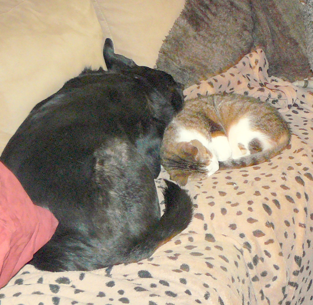 Shortly before we left San Carlos in 2010 to go to Arizona, a female dog was dumped outside the house. She was a Rottweiler crossbreed and must have just given birth to puppies for she was still in milk. We named her Hazel and she very quickly showed her most beautiful and loving nature to Jean and me and to the other animals. Hazel is an inspiration to humankind of what flows from offering forgiveness and unconditional love to the world.