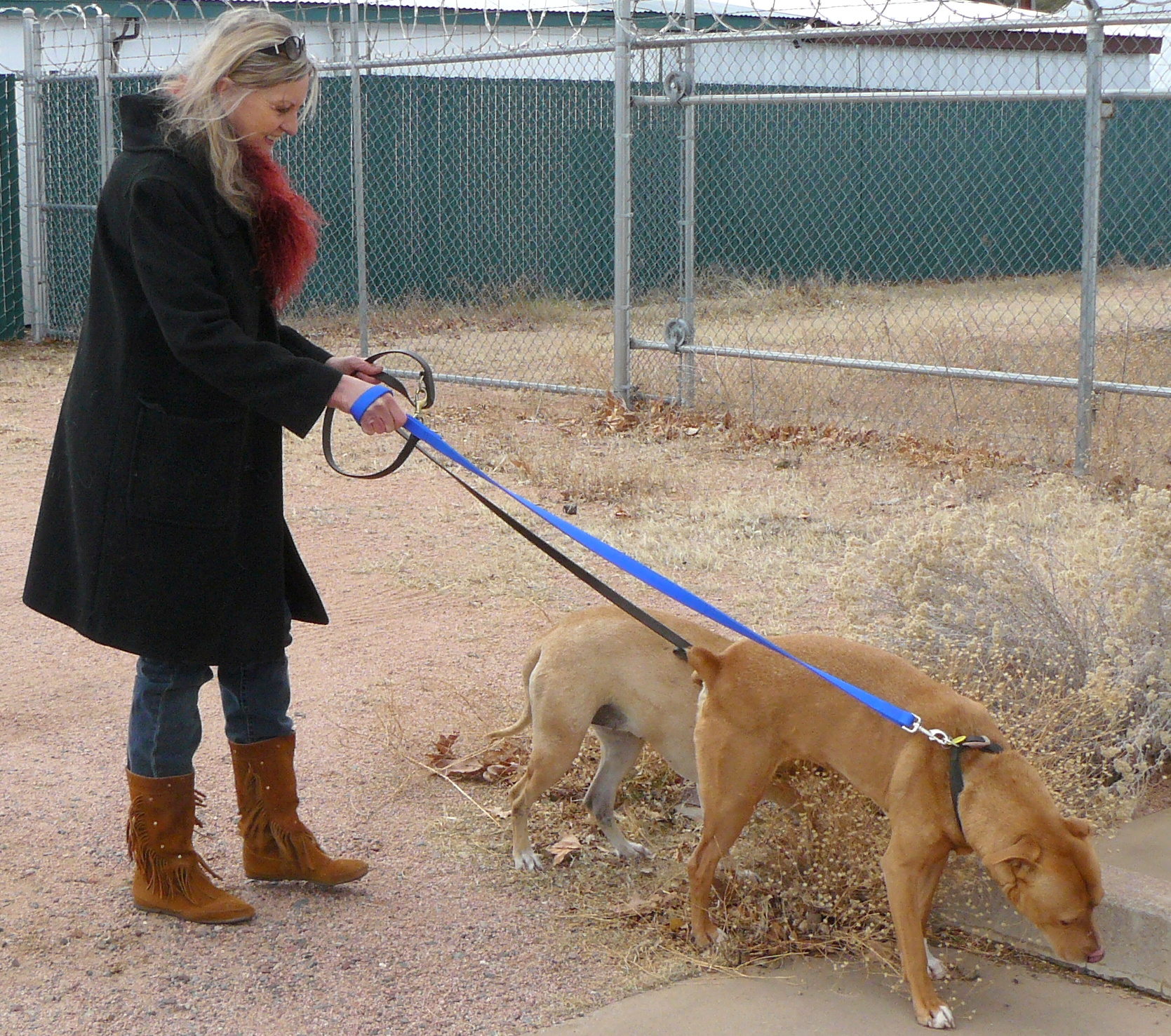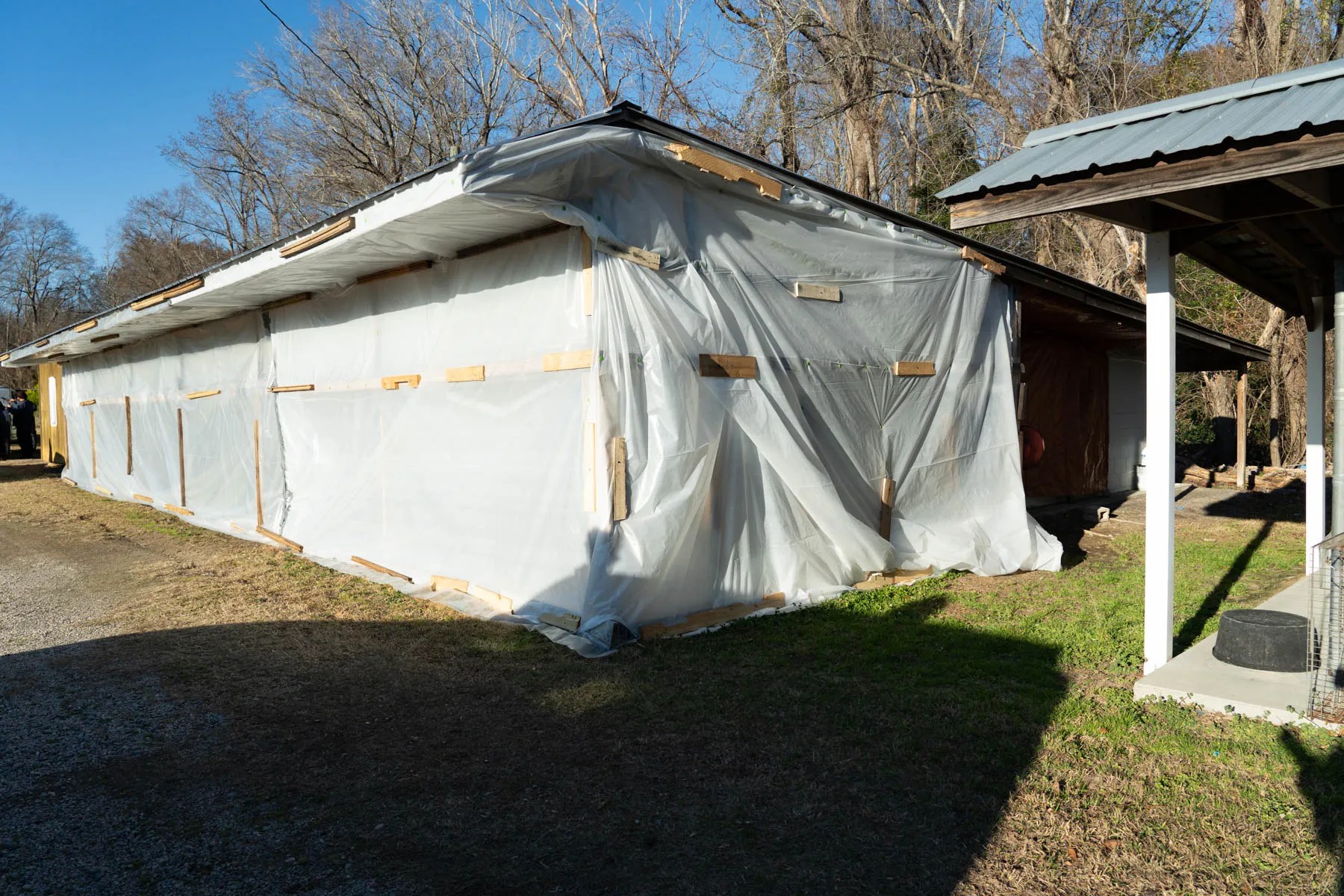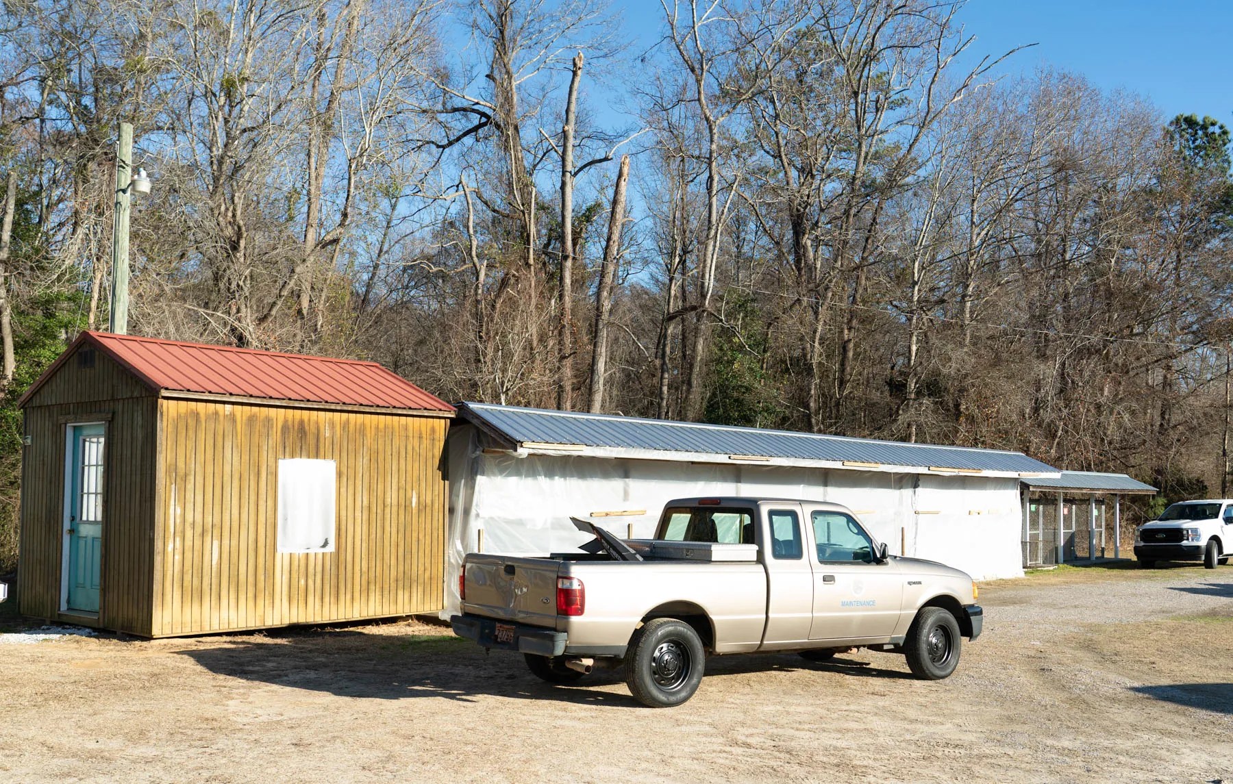 There is no heat or AC or walls, for that matter. The day we arrived, county maintenance workers were busy wrapping plastic around the kennels to try to give the dogs some protection from the cold.