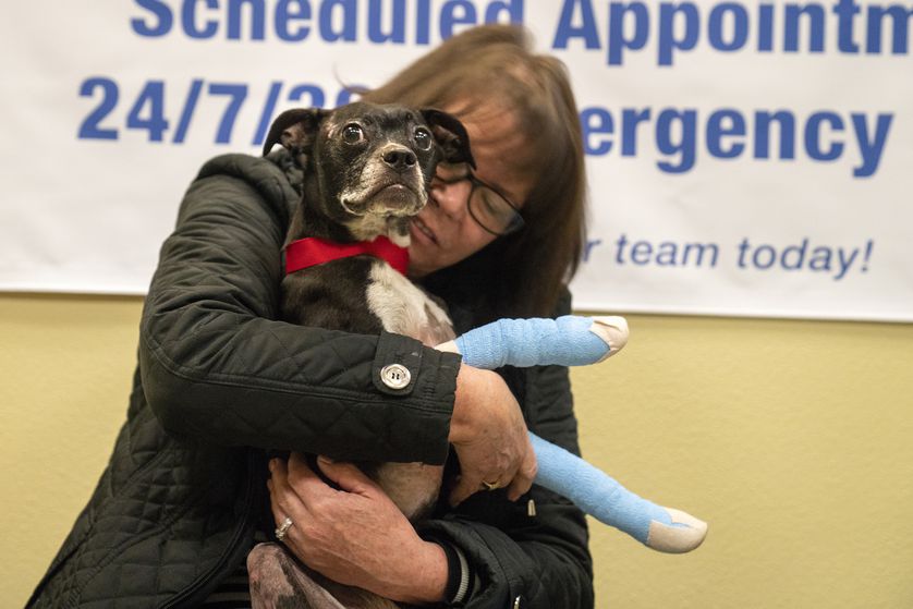 An 8-year-old Boston terrier mix named Olivia was one of the first dogs to receive treatment.
