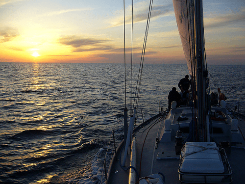 I spotted something in the water and shouted, “Dave, look, look there in the water, just to our left. That bit of sail, surely not from our mainsail?”