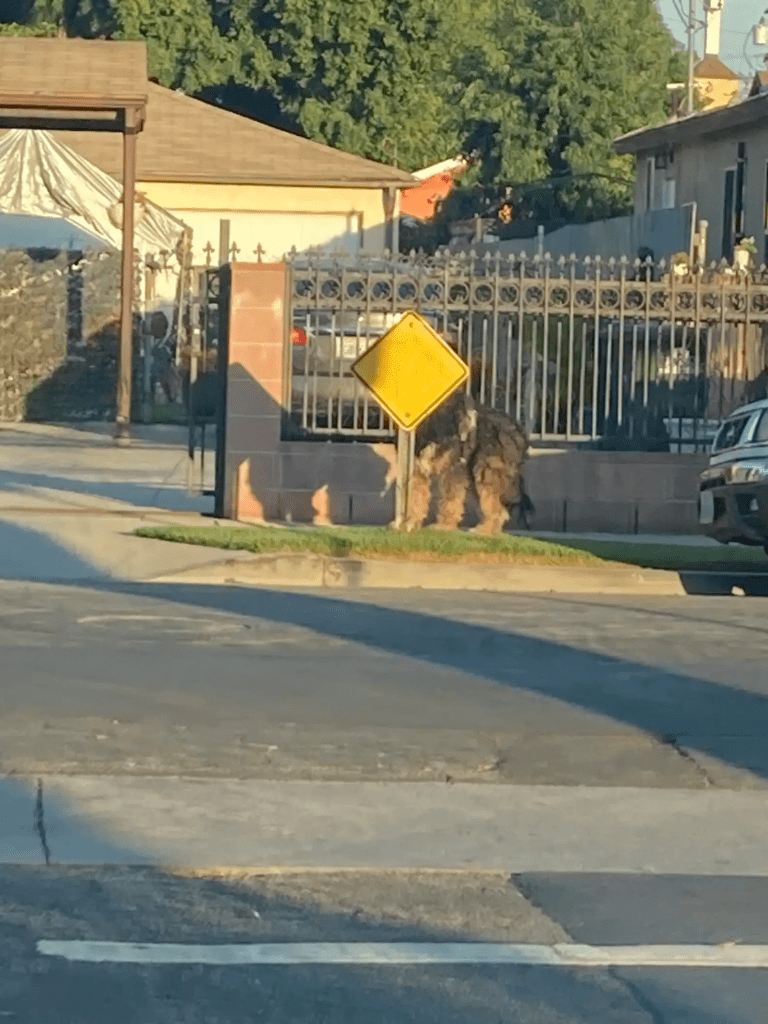 The other day, volunteer dog rescuer Mary Nakiso was driving through California’s Orange County when she passed someone cowering on the side of the street. The creature was large, hairy and alone. With a sinking feeling in her stomach, Nakiso slammed on her brakes to investigate.