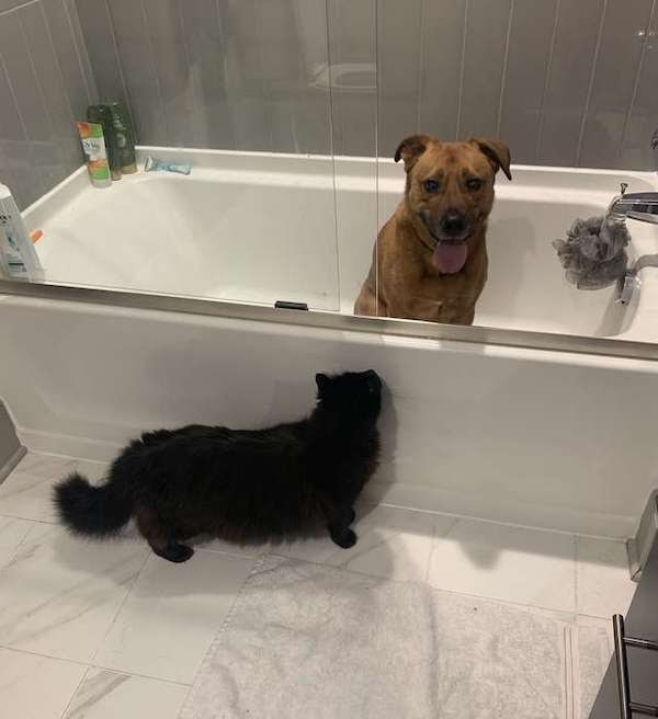 For a pittie mix named Moose, that friend is a cat named Marvin.