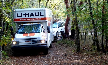 Luckily fate was on our side and a little before 11am on Thursday, 25th October, our mini-convoy of a U-Haul truck towing Jean’s Dodge laden with one group of dogs and our Jeep with other dogs on board, towing a trailer with our five cats inside, pulled up outside the local store in Merlin, some three miles from our new home, so we could purchase basic necessities for the next 24 hours.