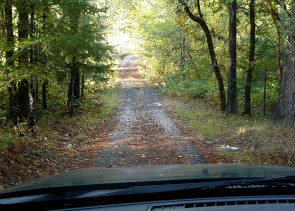 The driveway from our road to the house, about a quarter-of-a-mile long, within 300 feet crosses a creek that flows right across our property. Most of the time it’s a quiet, idyllic place for a dog to play.