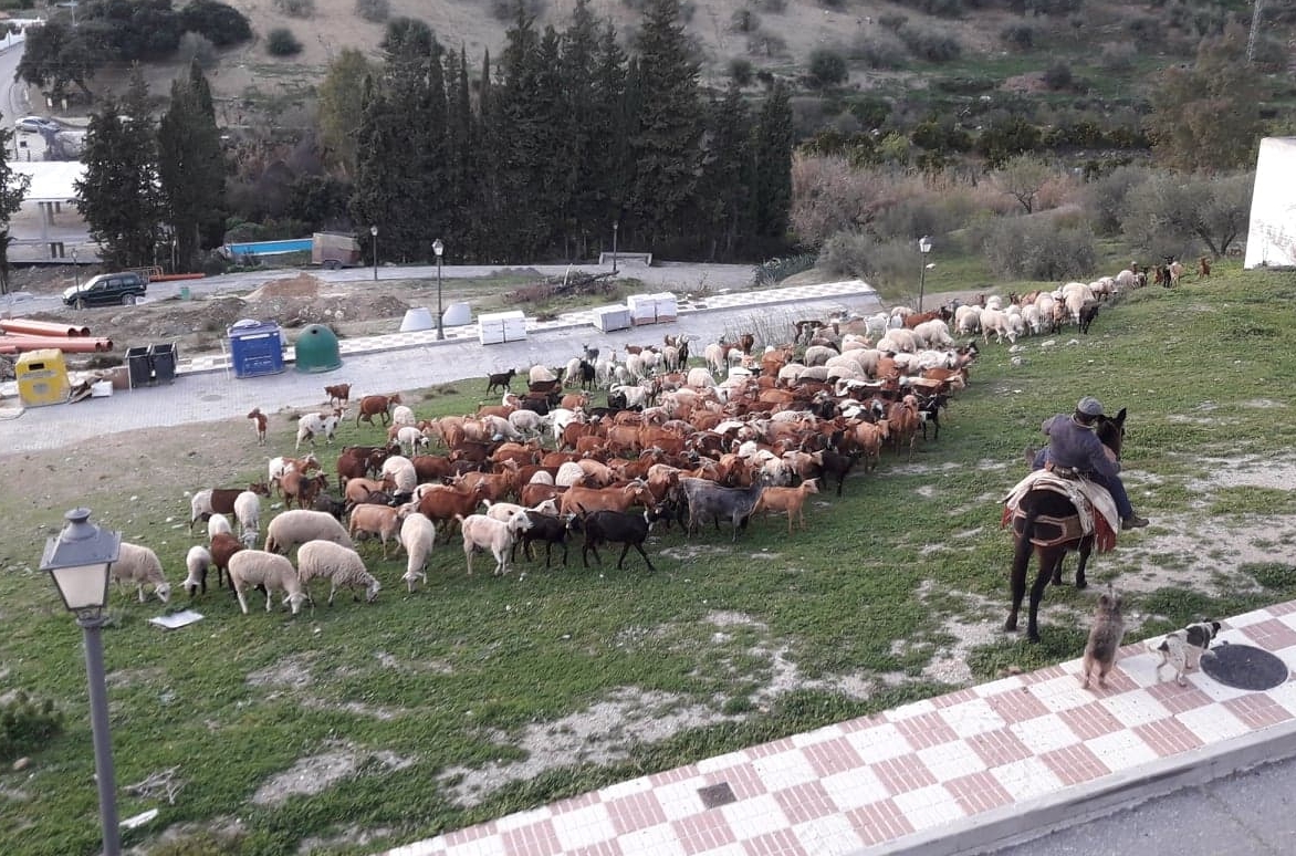 Eventually, we made it to Riogordo at around 5:45, There were a lot of workman and road reconstruction going on. Despite the diversions to avoid newly-laid concrete, the farmer on his mule drove his sheep and goats straight over it.