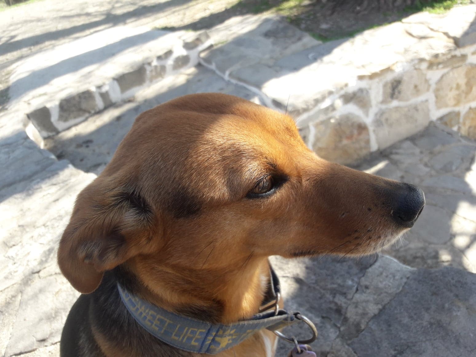 After a short break for Chica to catch some rays, a very long stretch of road walking followed and it was getting hot. I started to get a bit concerned about the shortage of water. I intended to knock on a door and ask but all the gates were padlocked and there was no sign of life. I began to feel really anxious – we were both thirsty and the route was about to leave the road and head across county where there would be much less chance of getting water. Then I saw a chap and his dog at the bottom of his driveway. He saw me and waited to speak to us. After mumbling in my extremely basic Spanish, it turned out he was Belgian and spoke excellent English. He fetched water for us and a very welcome apple for me.