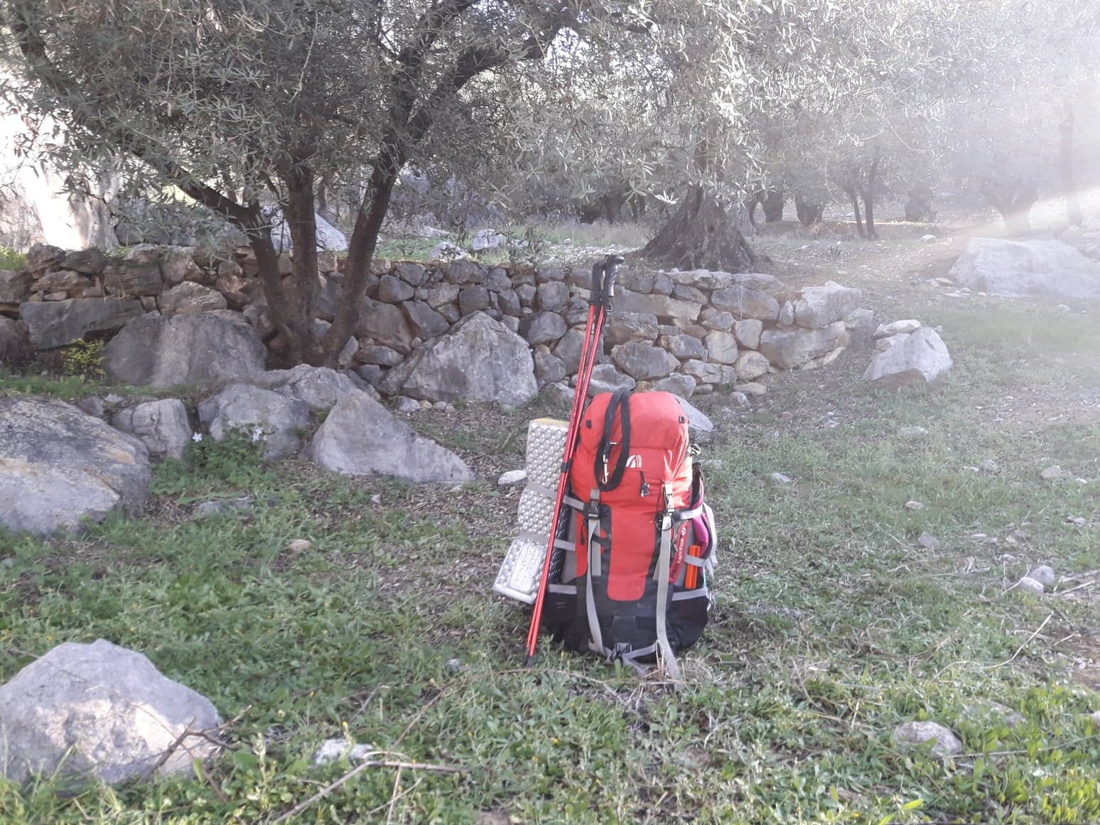 A hard uphill slog followed and this pack isn’t getting any lighter, I’m going to have to be more ruthless in selecting items next time! But it was a great day’s hiking and I was delighted to find Restaurante Gerado by the Rio Sabar where I scoffed an early supper of ham, egg and chips with two beers for €8. Bargain! Sated we trotted off into the hills for 45 mins and found a lovely camping place in the olive terraces – pictures tomorrow.