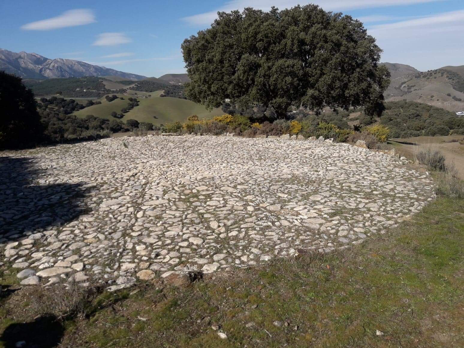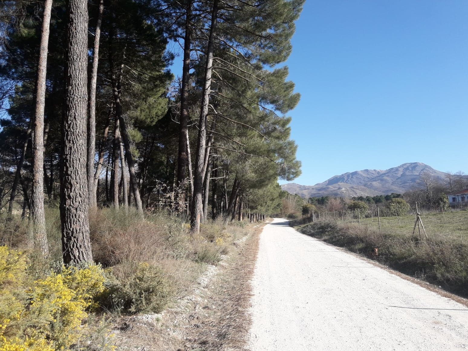 After a relaxing day off in Zaffaraya, Day 21 dawned fair and after breakfast of tostada and jam, we headed out of town on the dismantled railway track. This nice, level start was welcome before the climb up into the hills in holm oaks, later descending into farmland, mostly vegetable cultivation – artichokes and courgettes among others. As it began to heat up to around 25 deg, I passed a honey locust tree with the longest spines I’ve seen. These are related to the false acacia which I’ve had to trim for clients in the UK – a job to be done with extreme care and robust gloves.