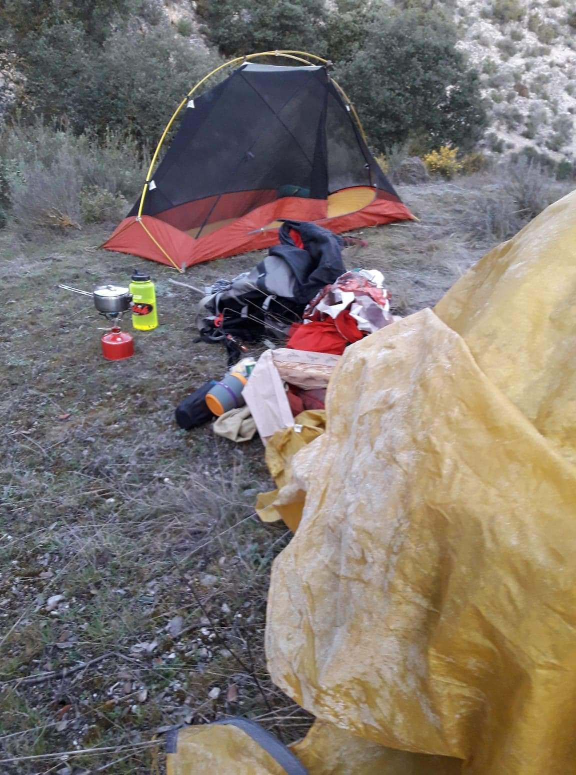 After good night’s sleep under the crag, we woke to find ourselves in thick cloud so didn’t rush to get going.