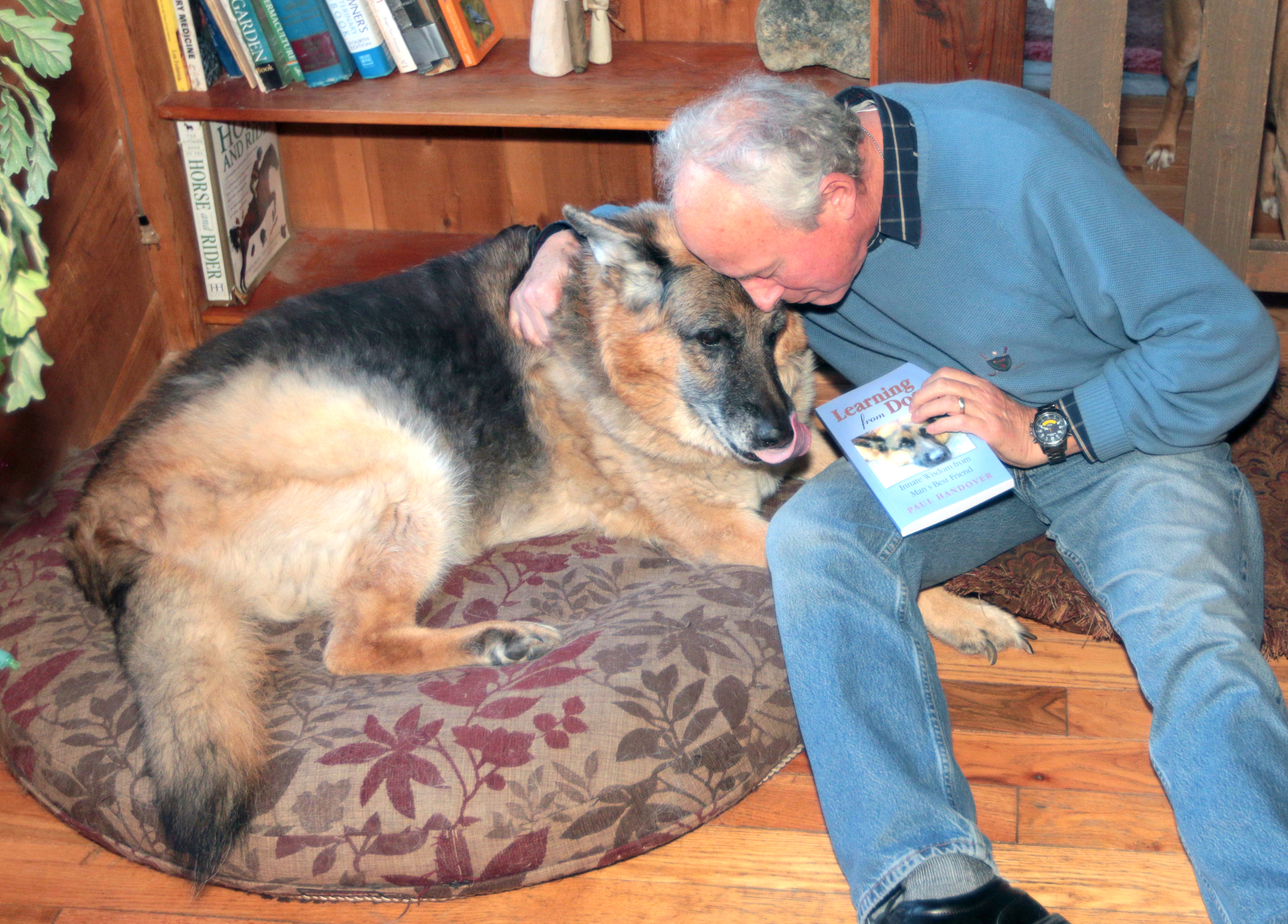 Dear old Pharaoh, as he has aged, (he will be 13 this coming June) clearly enjoys more hugs than when he was a more active, fitter German Shepherd and always on the go.