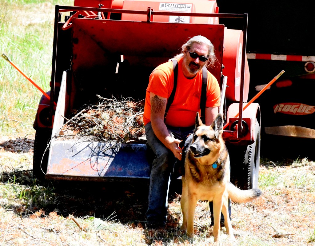Then it was a case of cutting off all the limbs and shredding them up on site. Inevitably the dogs took an interest!
