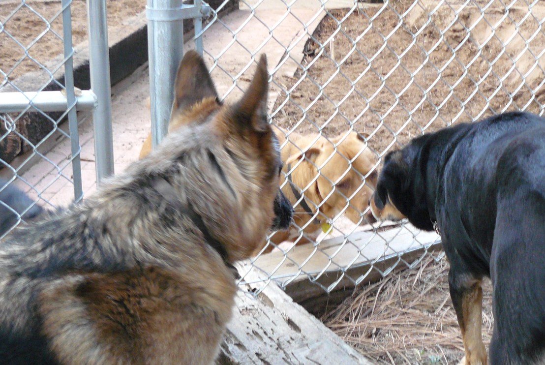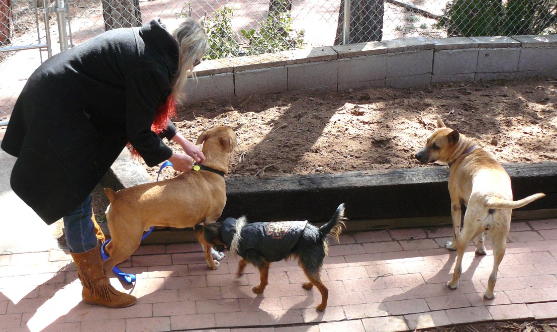 The next Friday, the Payson Roundup showed the Society’s ‘lonely hearts club’, highlighting animals that had been in care for a long time. The first dog shown was Casey. I telephone Chandra, the lady responsible for adoptions, and asked if Paul and I could bring Ruby to the shelter to find a companion for her. When we were at the shelter, Chandra asked us if we had anything against Pit Bulls. Of course we didn’t. Ruby was introduced to Casey and, as they say, the rest was history. Casey and Ruby right from the start were just wonderful together.