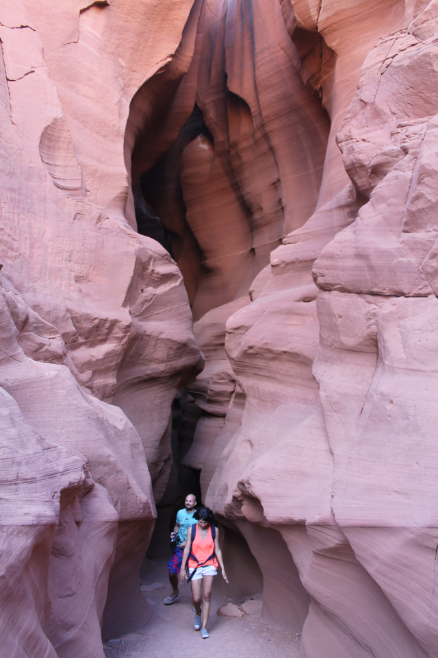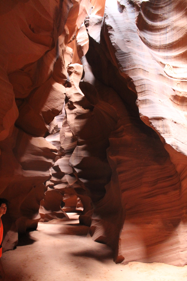 Just outside of Page, Arizona lies Antelope Canyon. Located on the Navajo Indian Reservation. The Dine (The People as the Navajos call themselves), manage the use of the canyon as a Navajo Nation National Park. Antelope Canyon is broken into two sections, Upper Antelope is known as Tse bighanilini which means “The place where water runs through rocks” (aka The Crack), and lower Antelope Canyon is Hasdestwazi or “spiral rock arches” (aka The Corkscrew). Both of these canyons are an awesome display of natural forces at work. Carved by flash floods that are common to the area, this Navajo National Park has been accessible only by Navajo Permits since 1997. The permit system came after 11 tourists from around the world were killed by a flash flood in Lower Antelope Canyon!