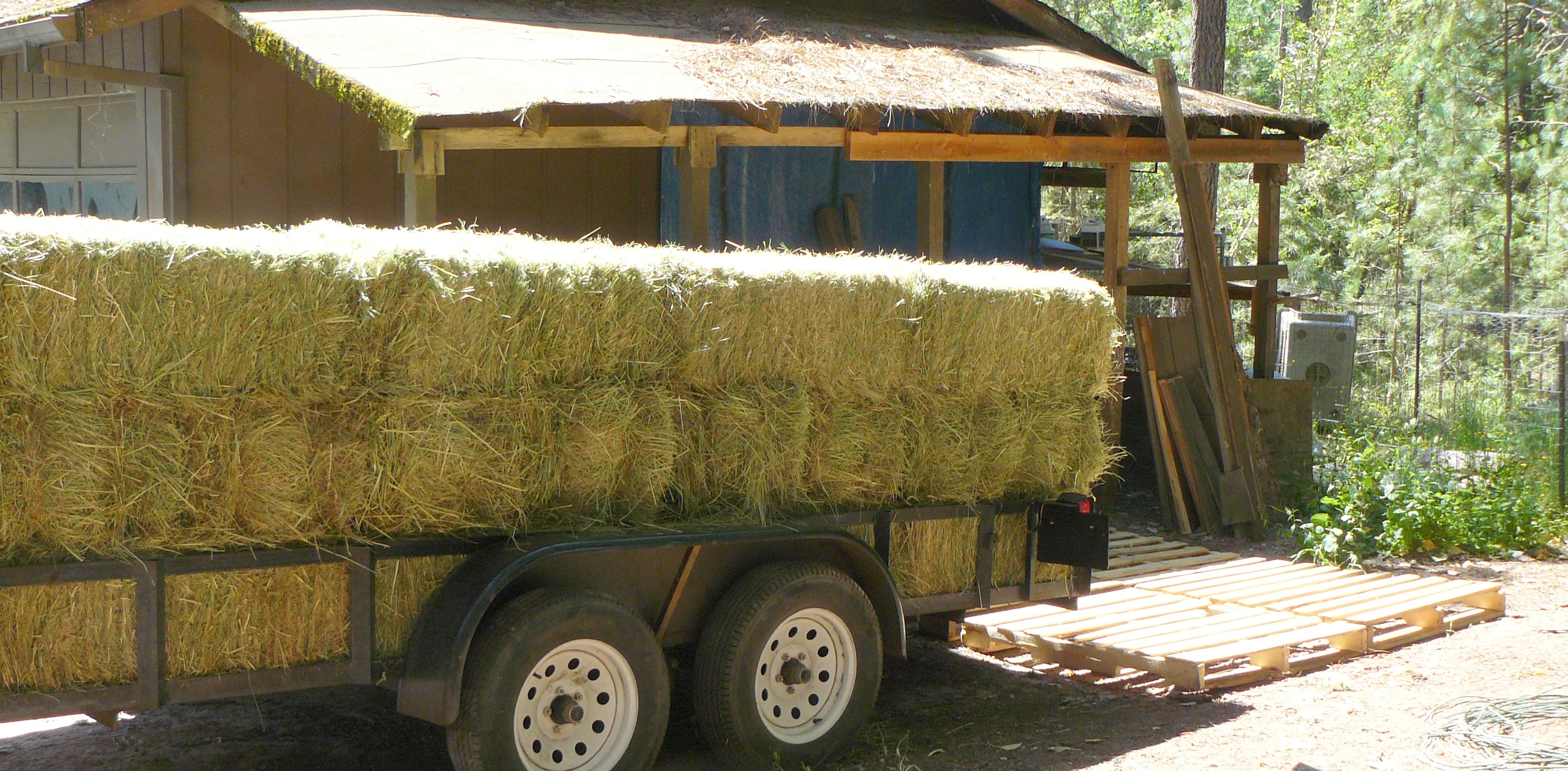 This time we had room for 60 bales, the equivalent of 4,200 lbs in weight. Each bale had to be lifted onto the trailer and stacked carefully.