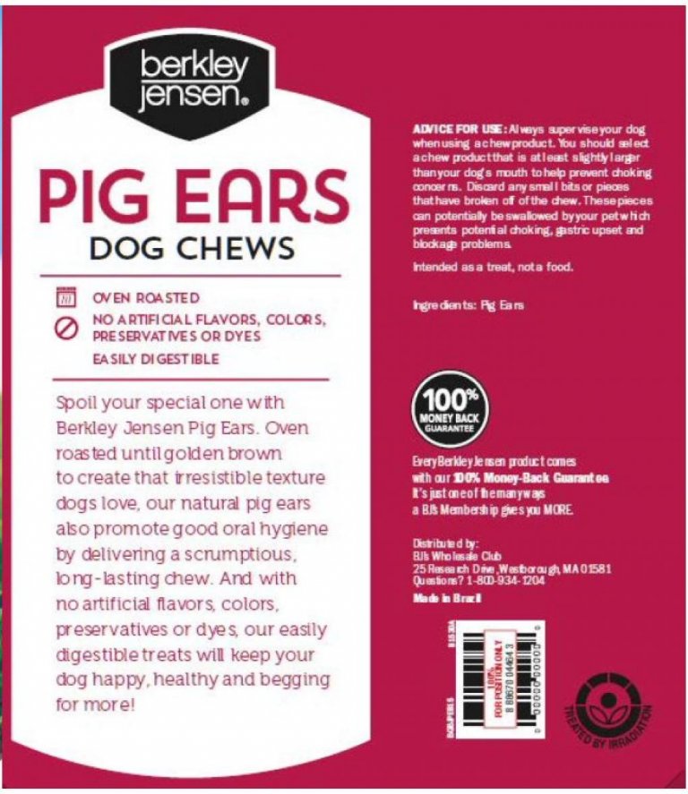 Berkley Jensen Pig Ear Dog Chews Sold at BJ’s Wholesale Club Recalled