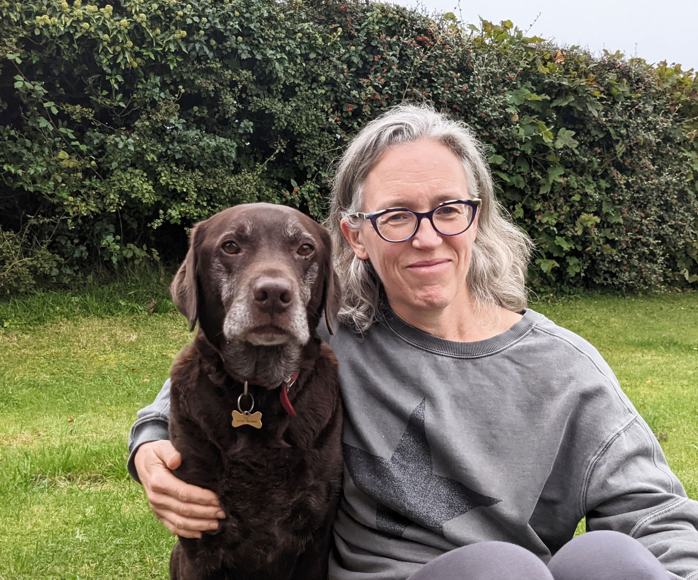 That’s when Rhys, the Hearing Dog, leapt into action. He found her and butted her hard with his nose. “What is it?”, she asked him. He squatted down on all fours, the signal that the smoke alarm is going off. He only makes that move for the smoke alarm so it’s clear what the problem is.