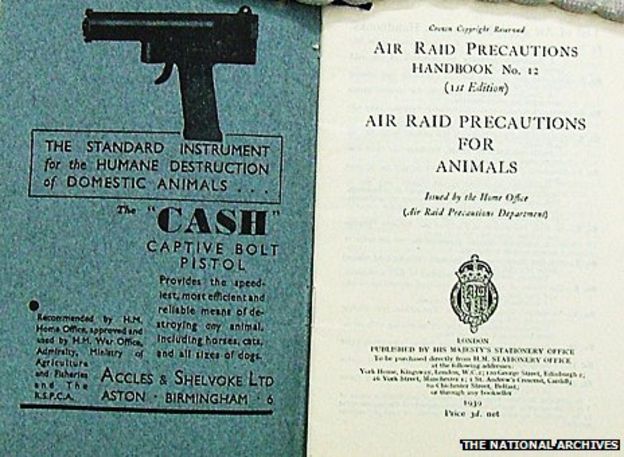 The pamphlet said: “If at all possible, send or take your household animals into the country in advance of an emergency.” It concluded: “If you cannot place them in the care of neighbours, it really is kindest to have them destroyed.”