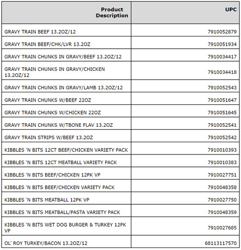 Later in February, Smucker/Big Heart voluntarily withdrew 10 varieties of Gravy Train dog food, along with certain shipments of Kibbles ‘N Bits, Ol’ Roy and Skippy.4 A complete list of the products pulled from store shelves — all of it canned dog food — can be found here. In early March, the FDA notified Smucker/Big Heart that its voluntary removal of products was now considered a recall, based on a test confirming the presence of pentobarbital in the tallow the company used in the recalled pet foods.
