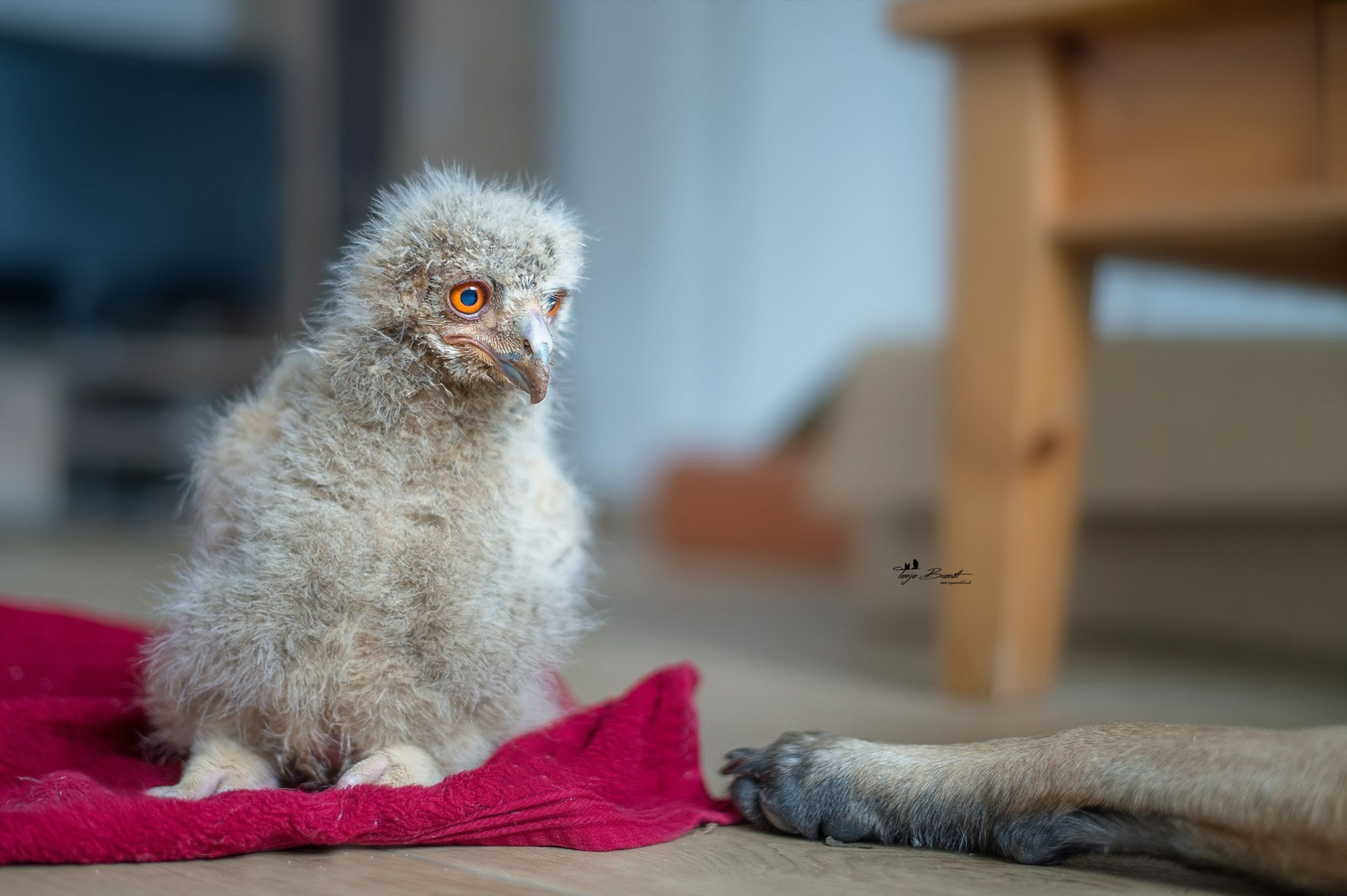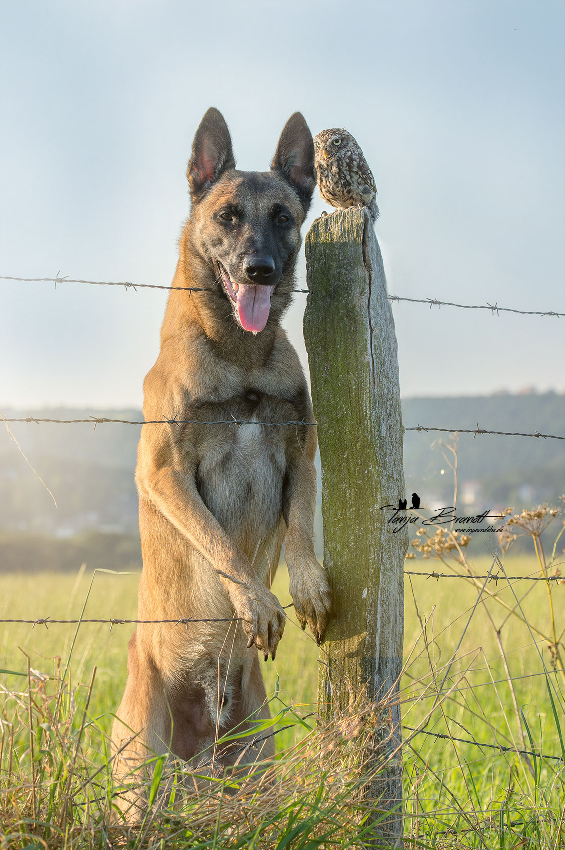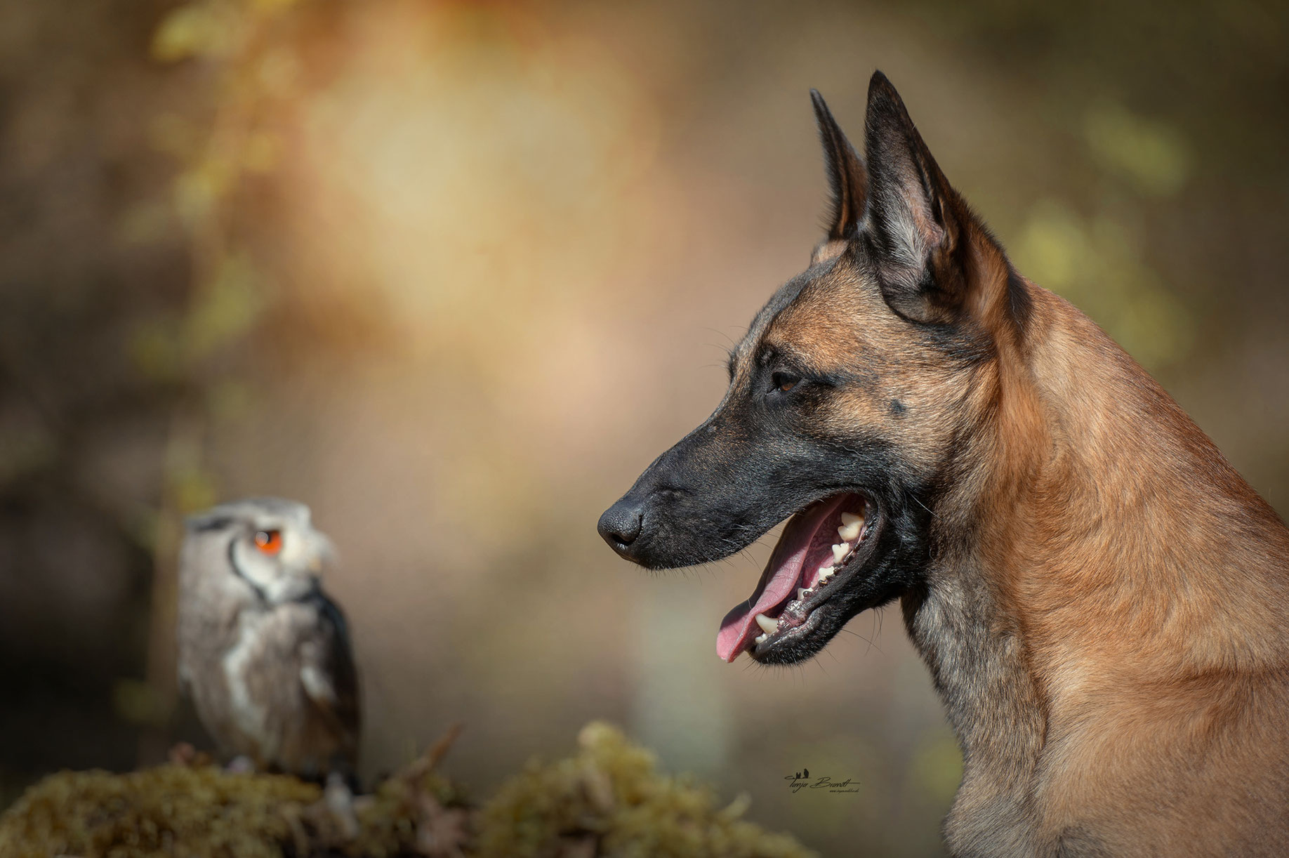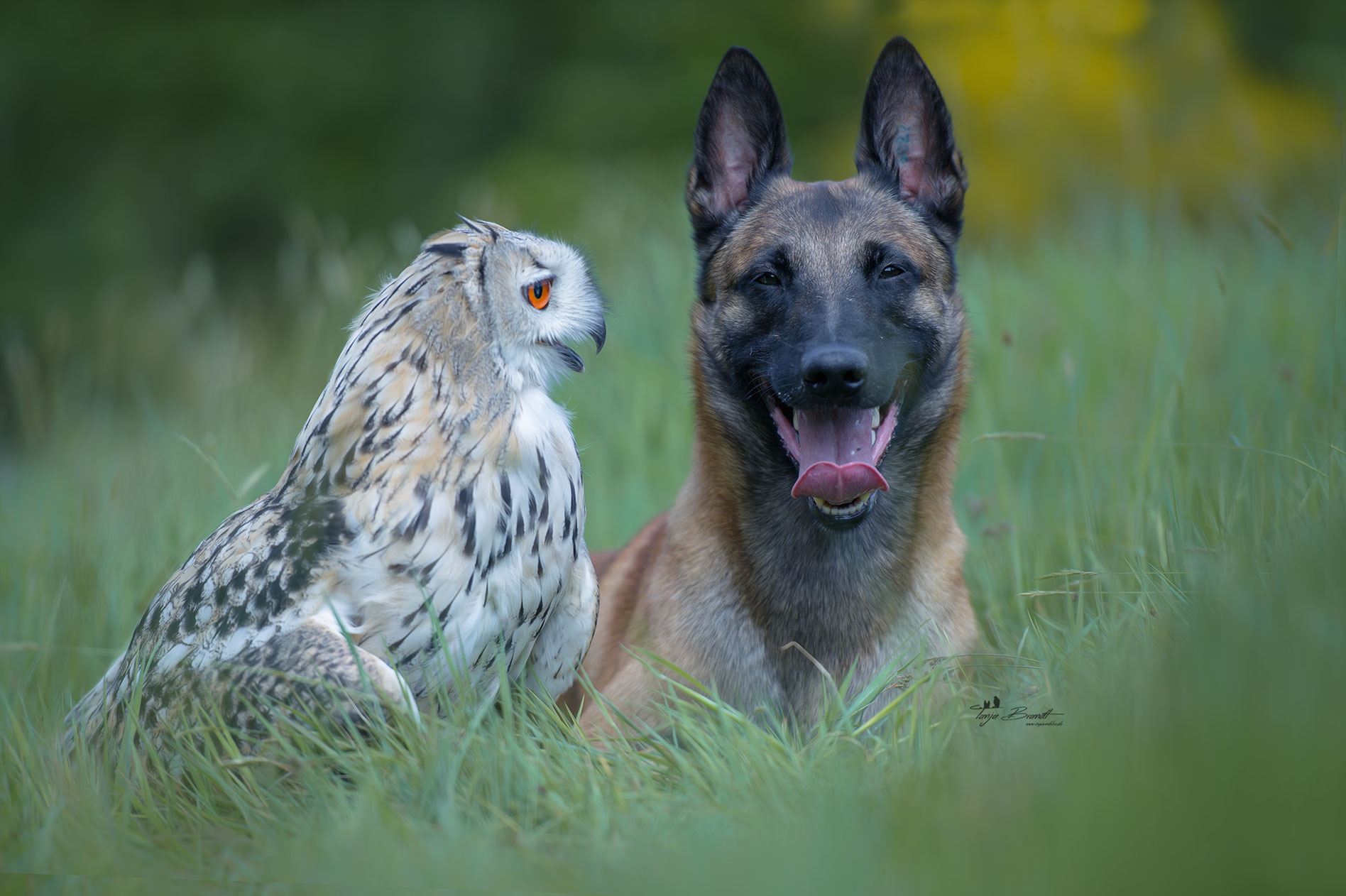 Recently, the German artist found a new challenge when she photographed the unique bond between two unlikely friends: Ingo, a Belgian Shepherd, and Poldi (Napoleon), a one-year-old owlet.