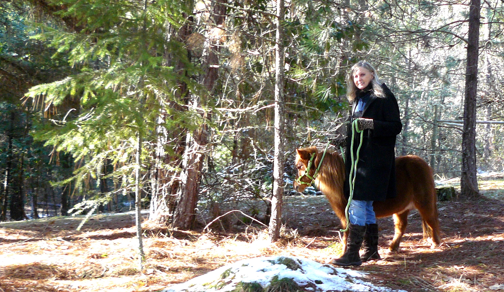 A few minutes later I swung the camera to take a picture of Dancer munching away in the morning sunshine, just a day after we collected her and Grace.